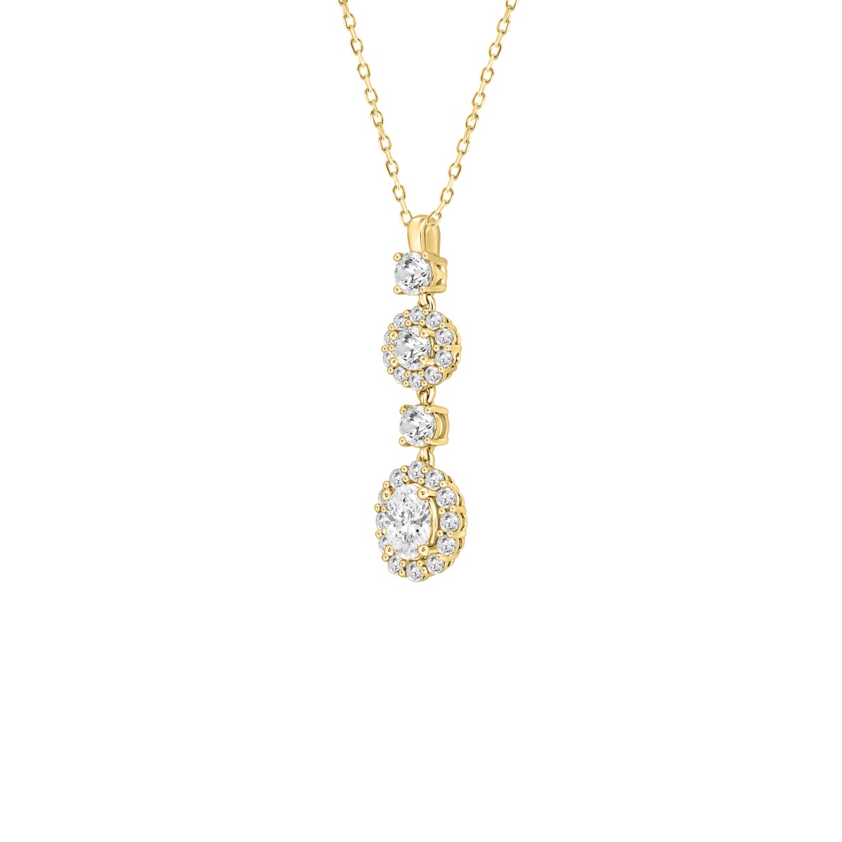 LADIES PENDANT WITH CHAIN 2CT ROUND/OVAL DIAMOND 14K YELLOW GOLD (CENTER STONE OVAL DIAMOND 3/4CT )