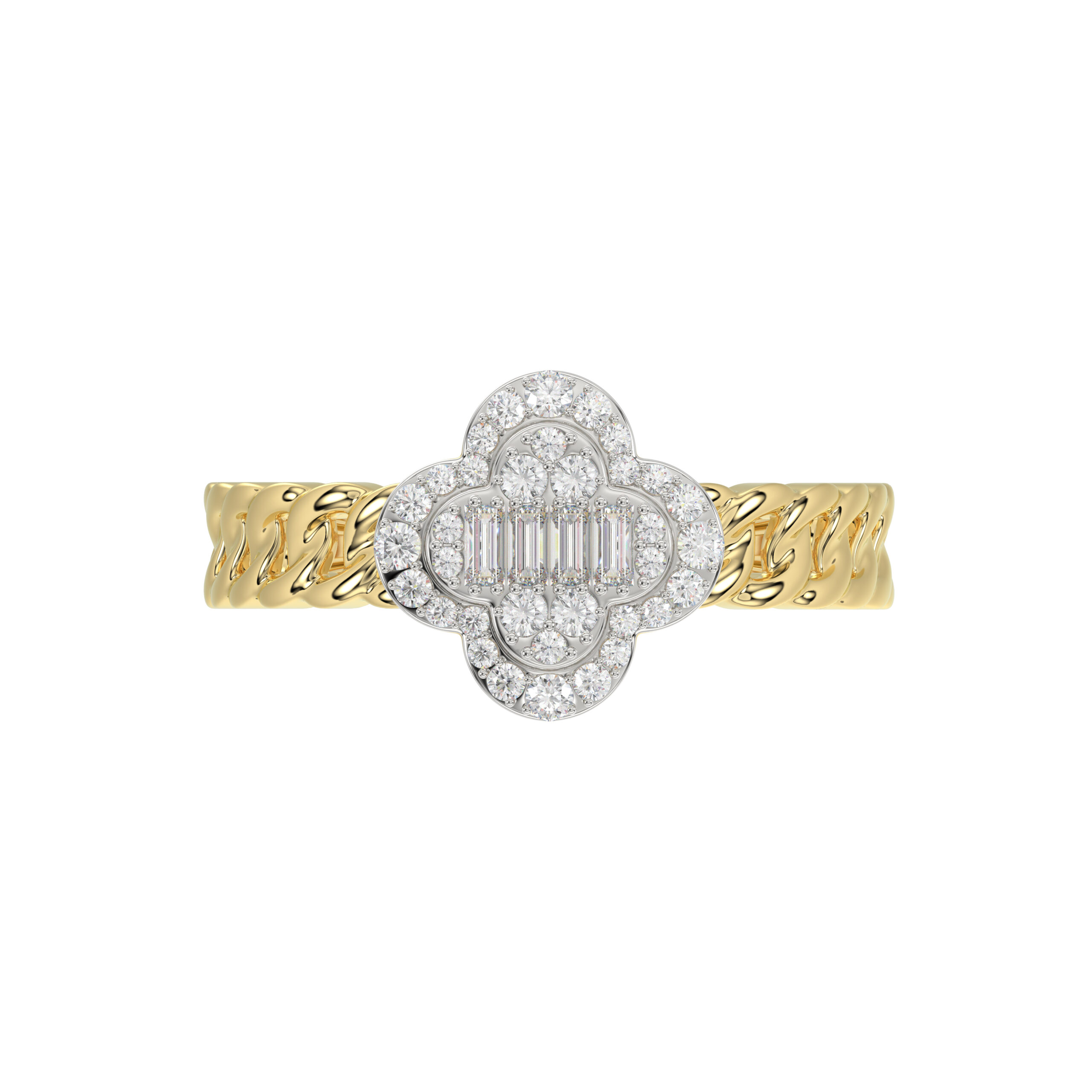 LADIES RING 0.25CT ROUND/BAGUETTE DIAMOND 10K YELLOW GOLD