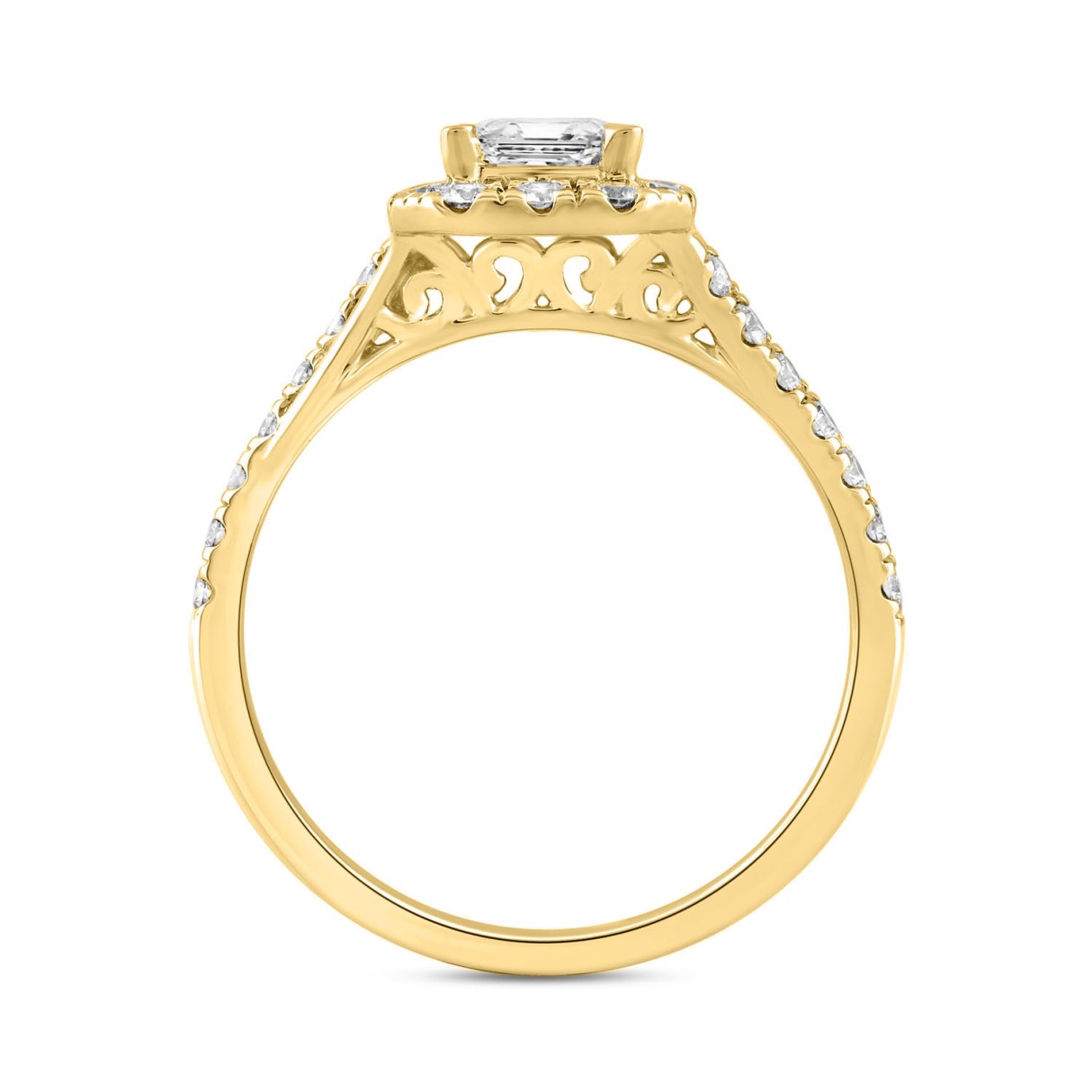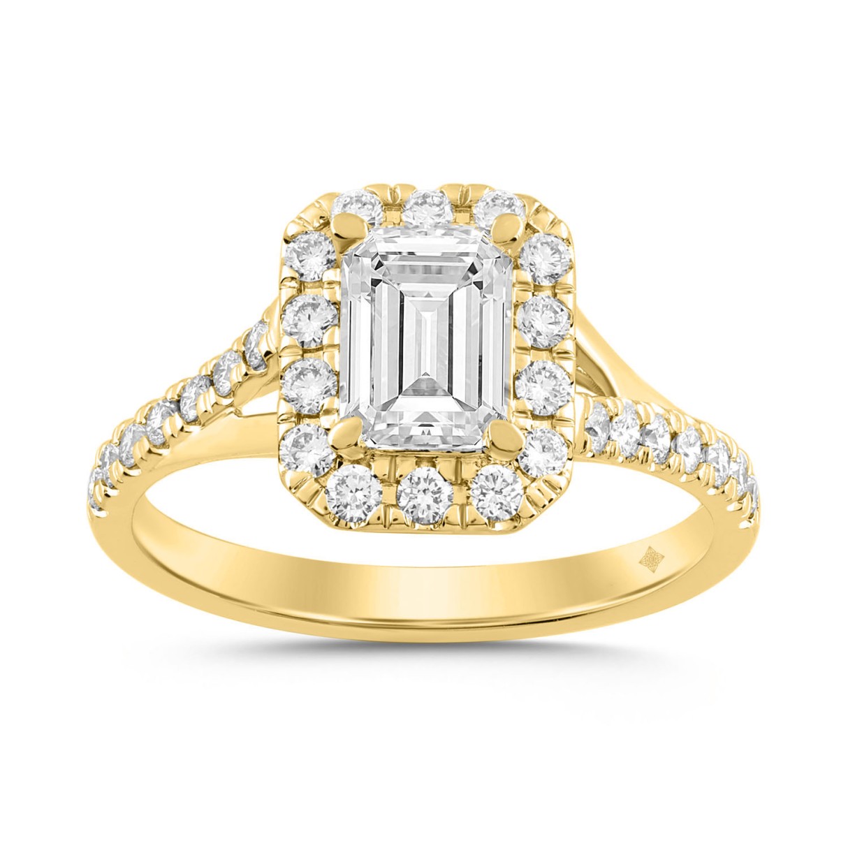 LADIES RING 1 1/2CT ROUND/EMERALD DIAMOND 14K YELLOW GOLD (CENTER STONE EMERALD DIAMOND 1CT)