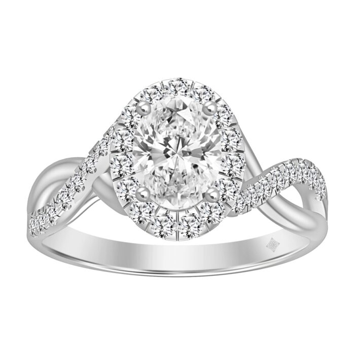LADIES RING 1 1/2CT ROUND/OVAL DIAMOND 14K WHITE GOLD (CENTER STONE OVAL DIAMOND 1CT)