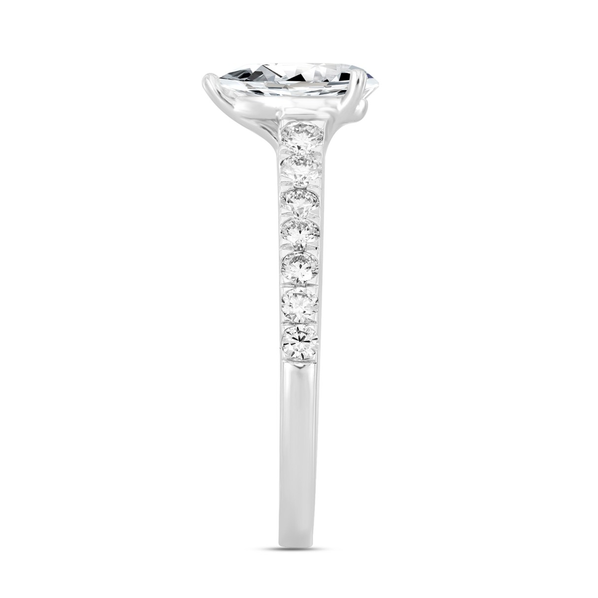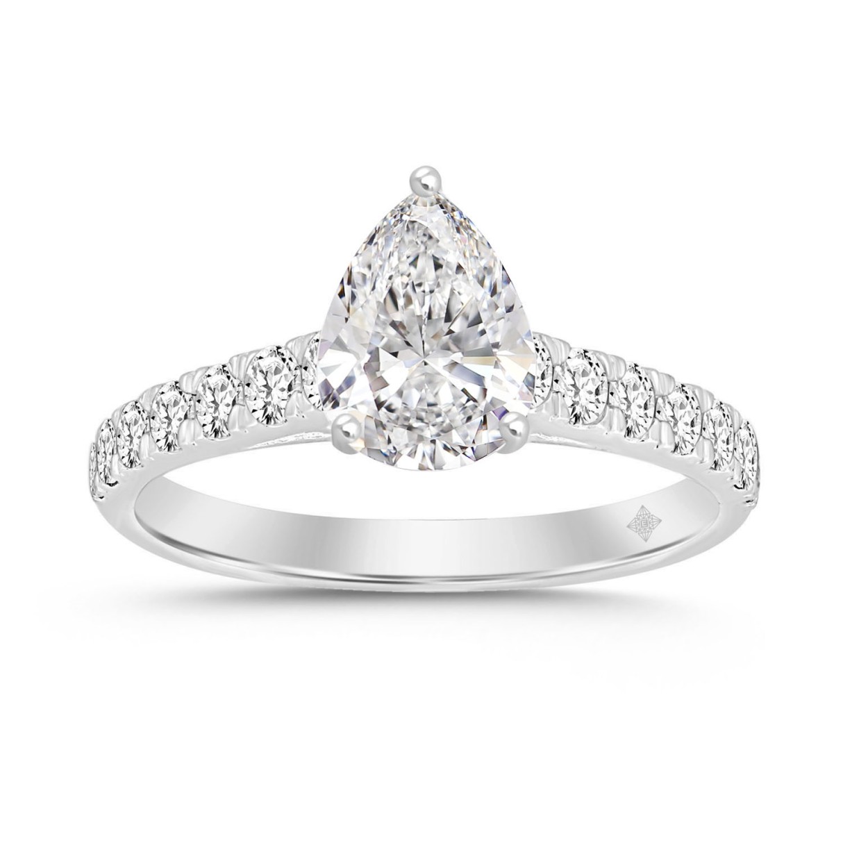LADIES RING 1 1/2CT ROUND/PEAR DIAMOND 14K WHITE GOLD (CENTER STONE PEAR DIAMOND 1CT)