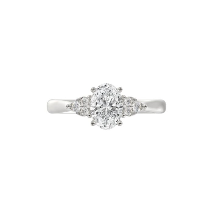 LADIES RING 1 1/8CT ROUND/OVAL DIAMOND 14K WHITE GOLD (CENTER STONE OVAL DIAMOND 1CT )