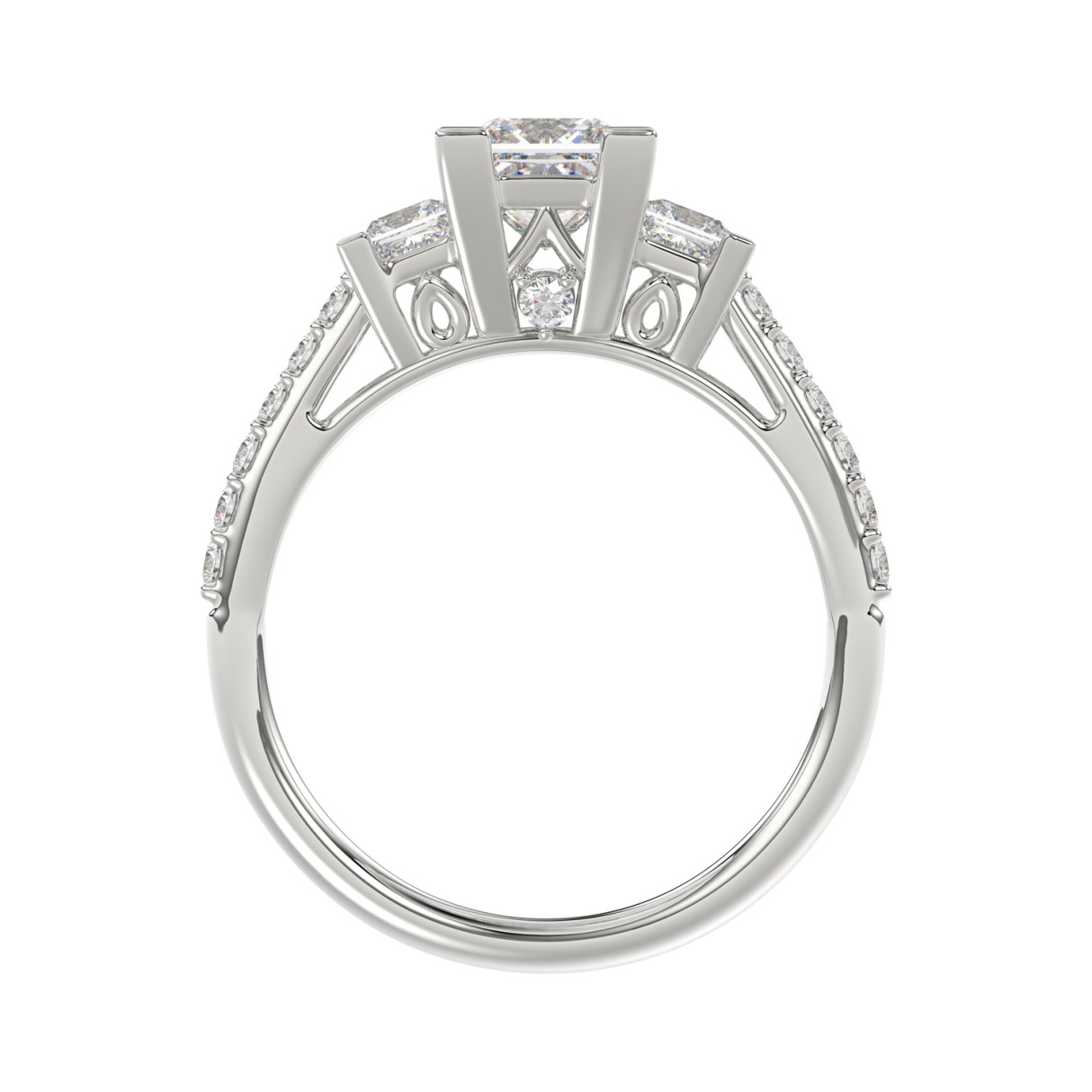 LADIES RING 1 3/4CT PRINCESS/ROUND DIAMOND 14K WHITE GOLD (CENTER STONE PRINCESS DIAMOND 1CT )