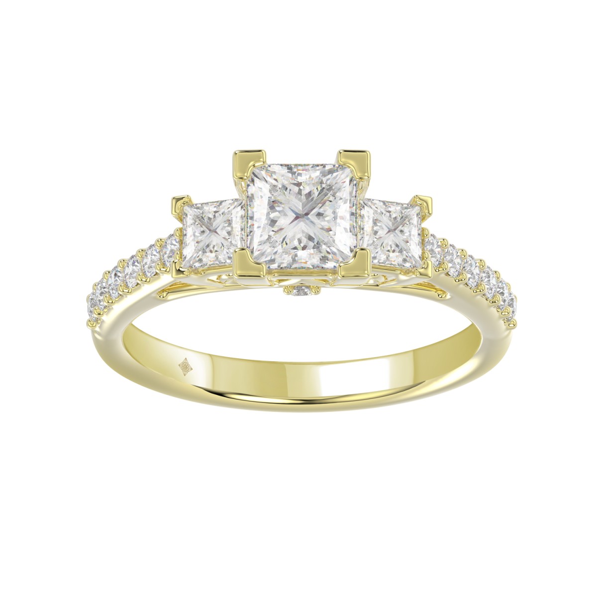 LADIES RING 1 3/4CT ROUND/PRINCESS DIAMOND 14K YELLOW GOLD (CENTER STONE PRINCESS DIAMOND 1CT )
