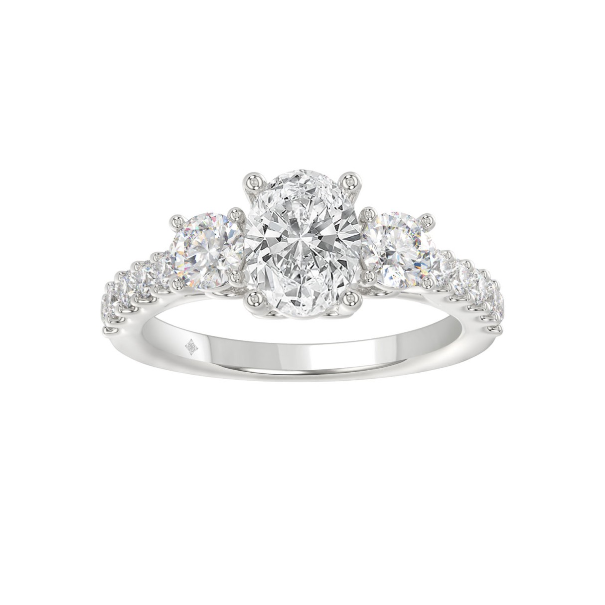 LADIES RING 2 1/2CT OVAL/ROUND DIAMOND 14K WHITE GOLD (CENTER STONE OVAL DIAMOND 1 1/2CT )