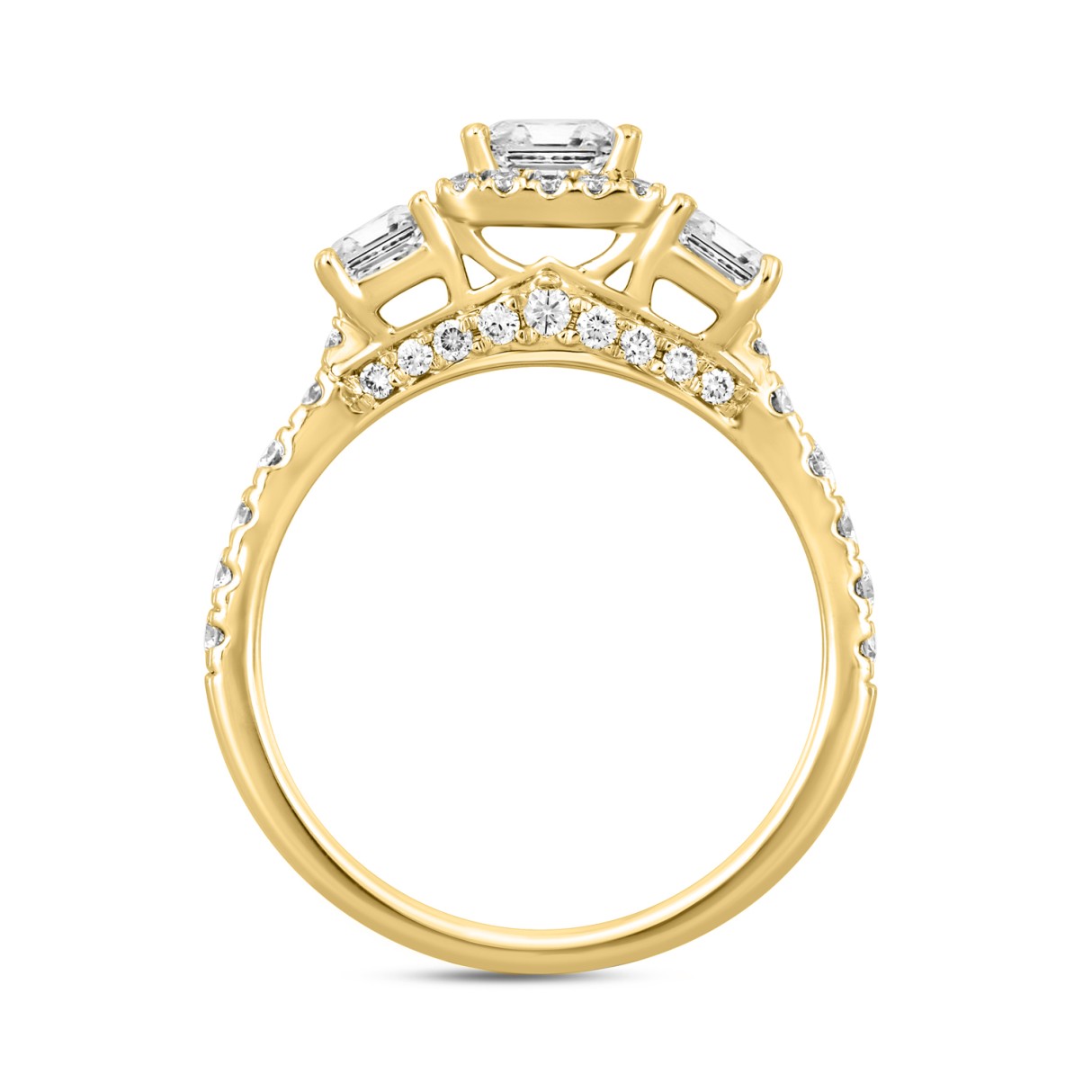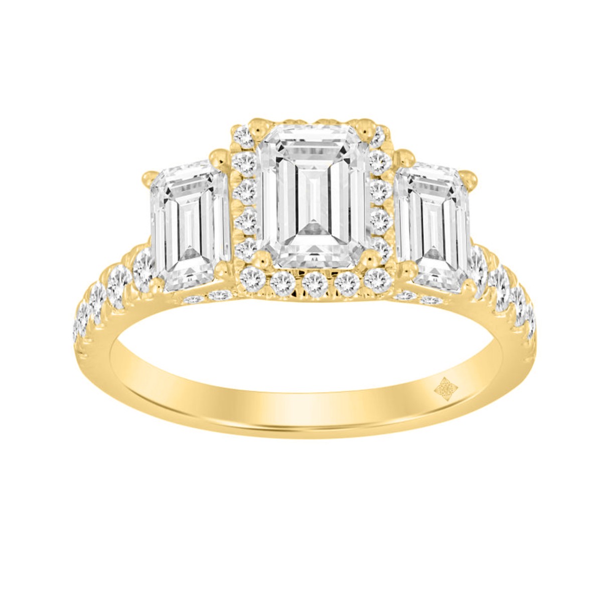 LADIES RING 2 1/2CT ROUND/EMERALD DIAMOND 14K YELLOW GOLD (CENTER STONE EMERALD DIAMOND 1CT )