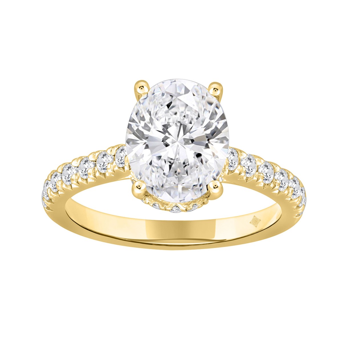 LADIES RING 2 1/2CT ROUND/OVAL DIAMOND 14K YELLOW GOLD (CENTER STONE OVAL DIAMOND 2CT )