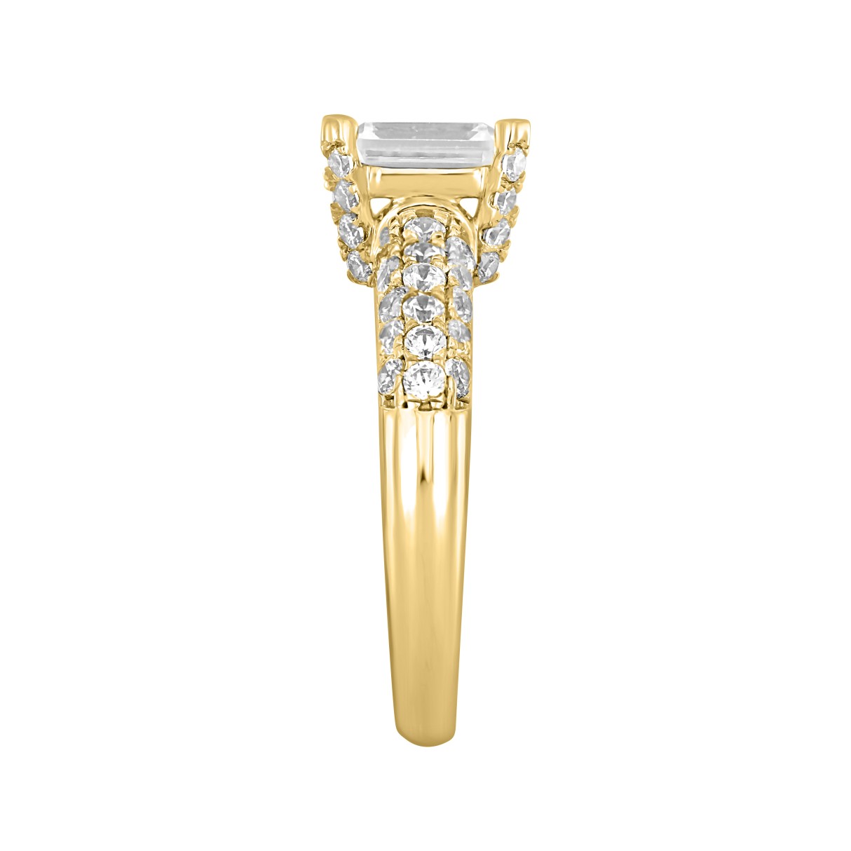 LADIES RING 2 1/3CT ROUND/EMERALD DIAMOND 14K YELLOW GOLD (CENTER STONE EMERALD DIAMOND 1 1/2CT )