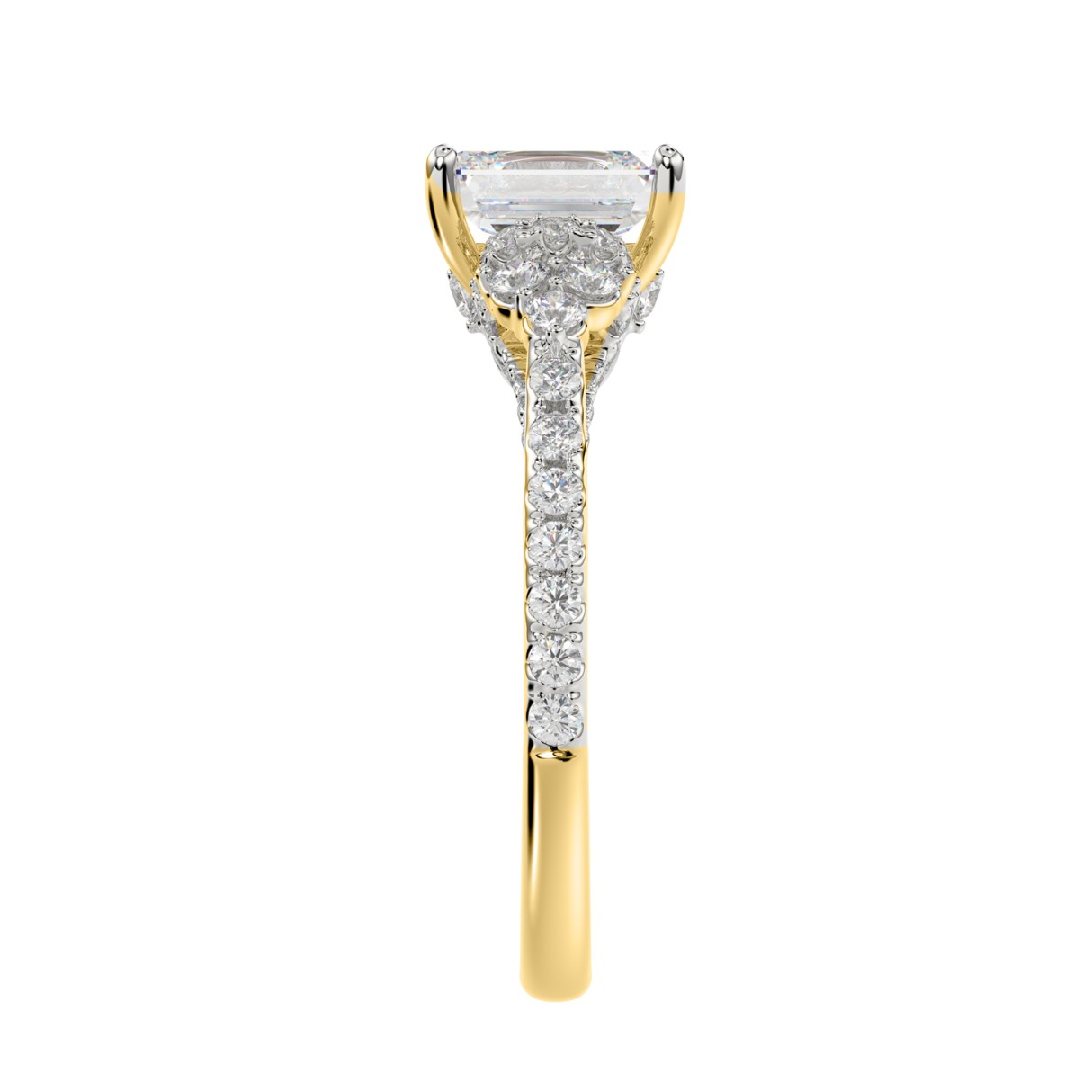 LADIES RING 2 1/4CT ROUND/EMERALD DIAMOND 14K YELLOW GOLD (CENTER STONE EMERALD DIAMOND 1 1/2CT )