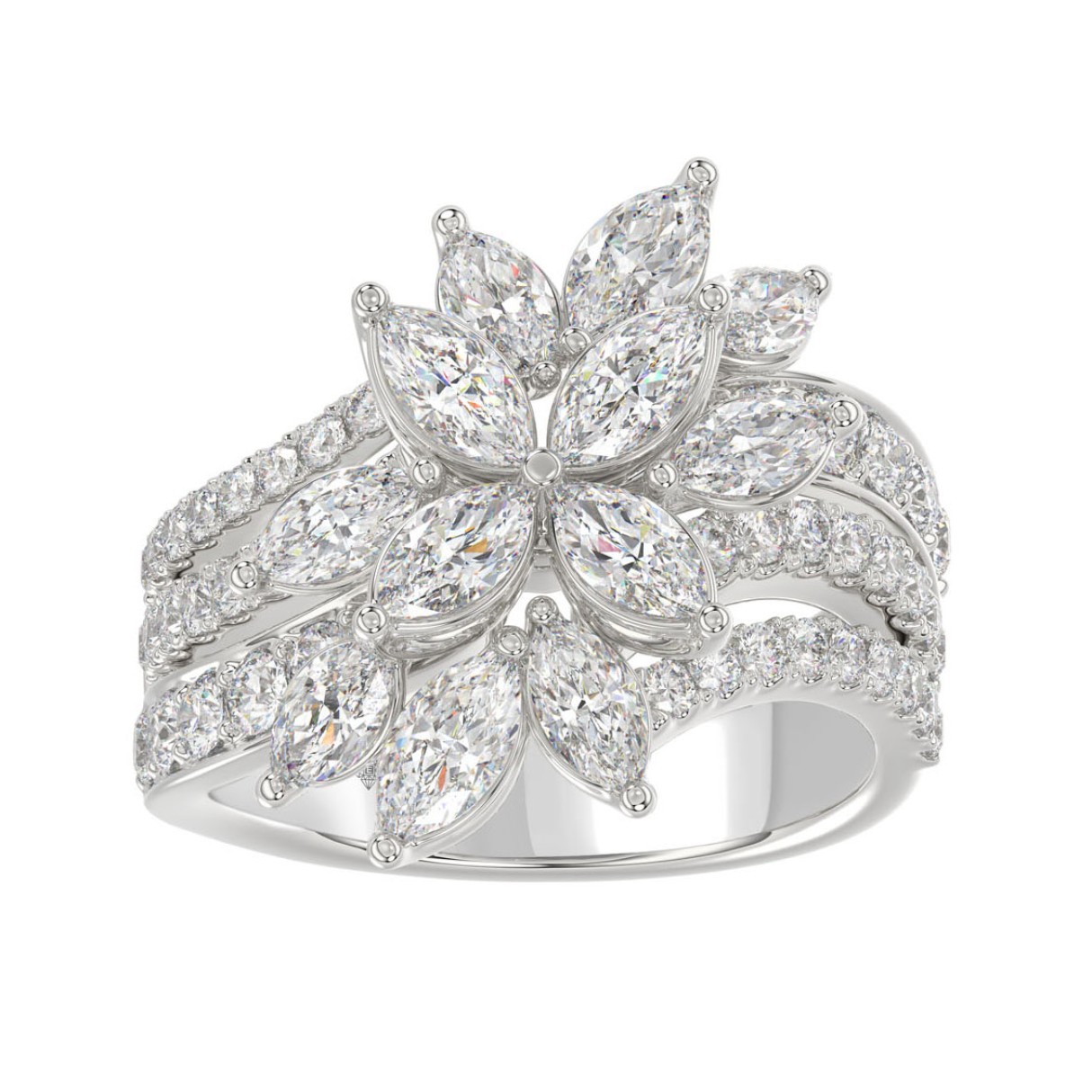 LADIES RING 2 1/4CT ROUND/MARQUISE DIAMOND 14K WHITE GOLD