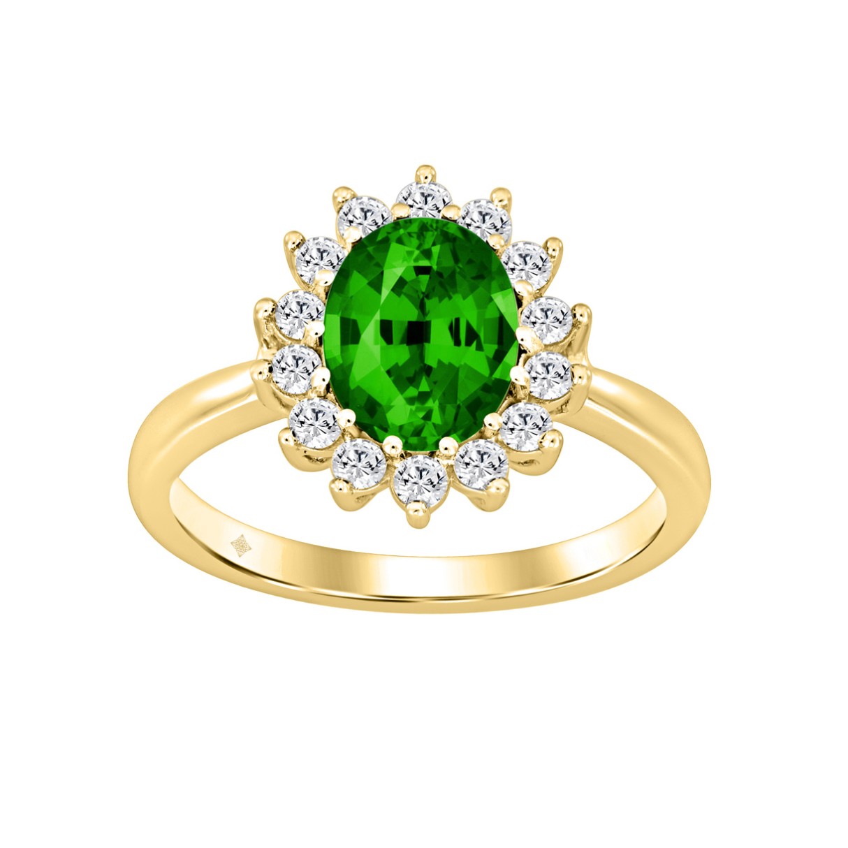LADIES RING 2 1/5CT ROUND/GREEN EMERALD OVAL DIAMOND 14K YELLOW GOLD (CENTER STONE GREEN EMERALD OVAL DIAMOND 1 7/8CT )