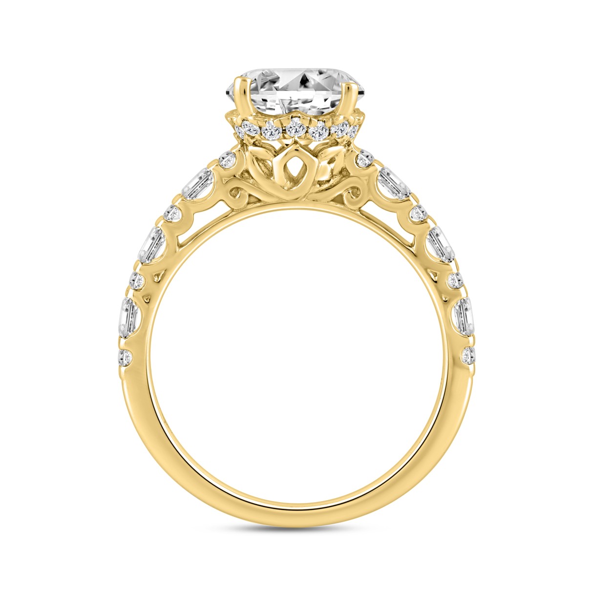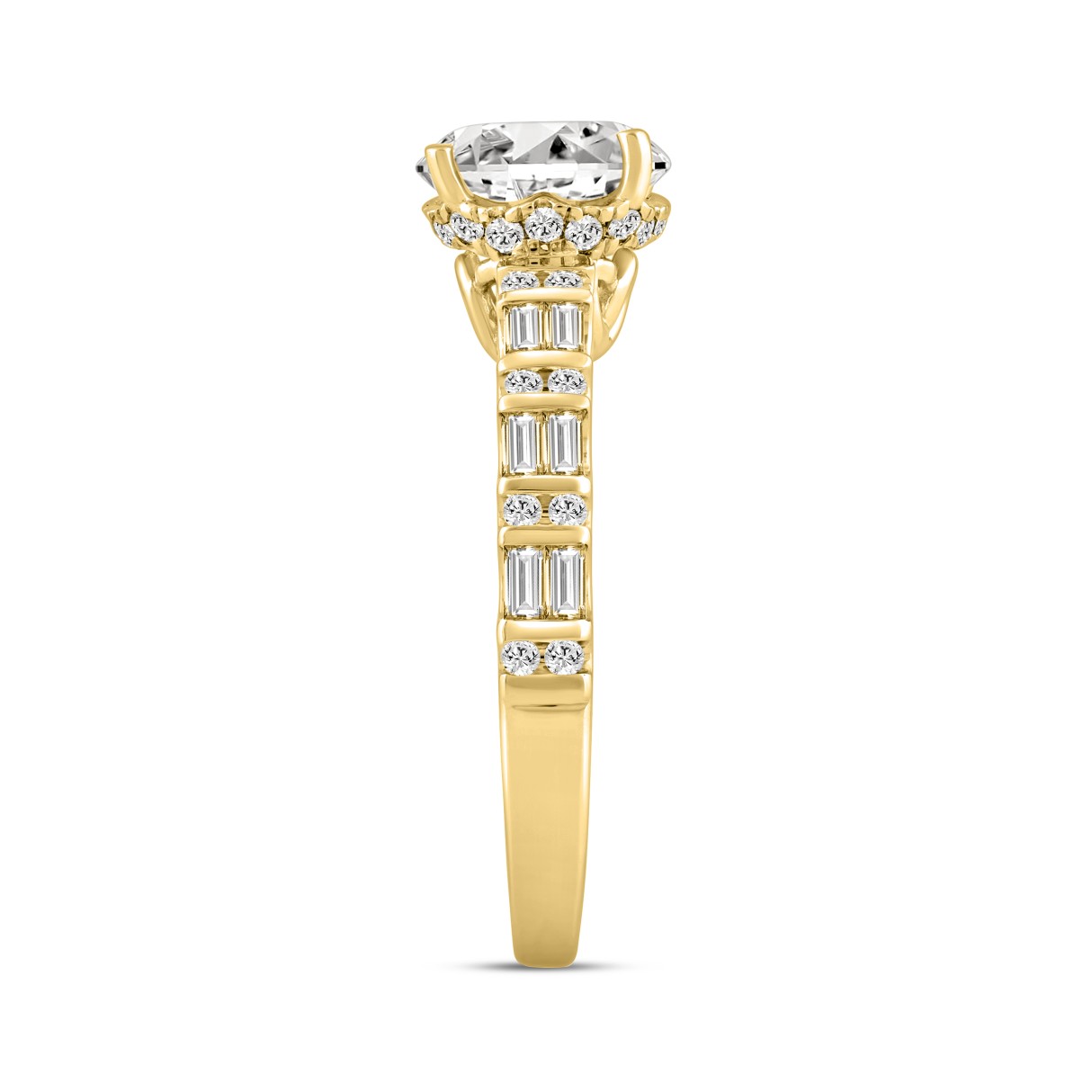 LADIES RING 2.50CT ROUND/BAGUETTE DIAMOND 14K YELLOW GOLD (CENTER STONE ROUND DIAMOND 2.00CT)