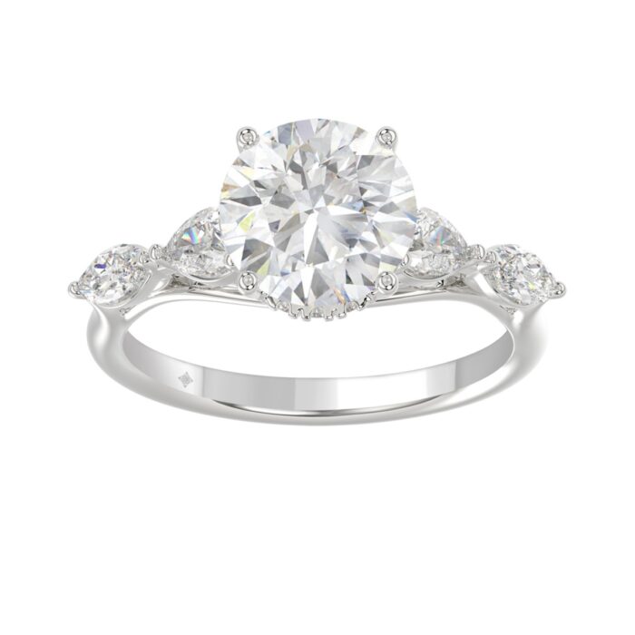 LADIES RING 2.50CT ROUND/PEAR/MARQUISE DIAMOND 14K WHITE GOLD (CENTER STONE ROUND DIAMOND 2.00CT)
