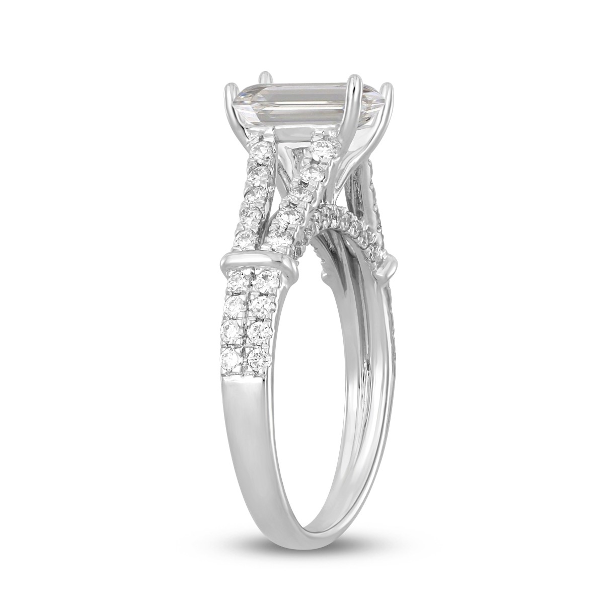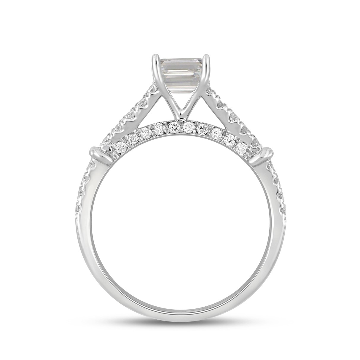 LADIES RING 2CT ROUND/EMERALD DIAMOND 14K WHITE GOLD (CENTER STONE EMERALD DIAMOND 1 1/2CT )