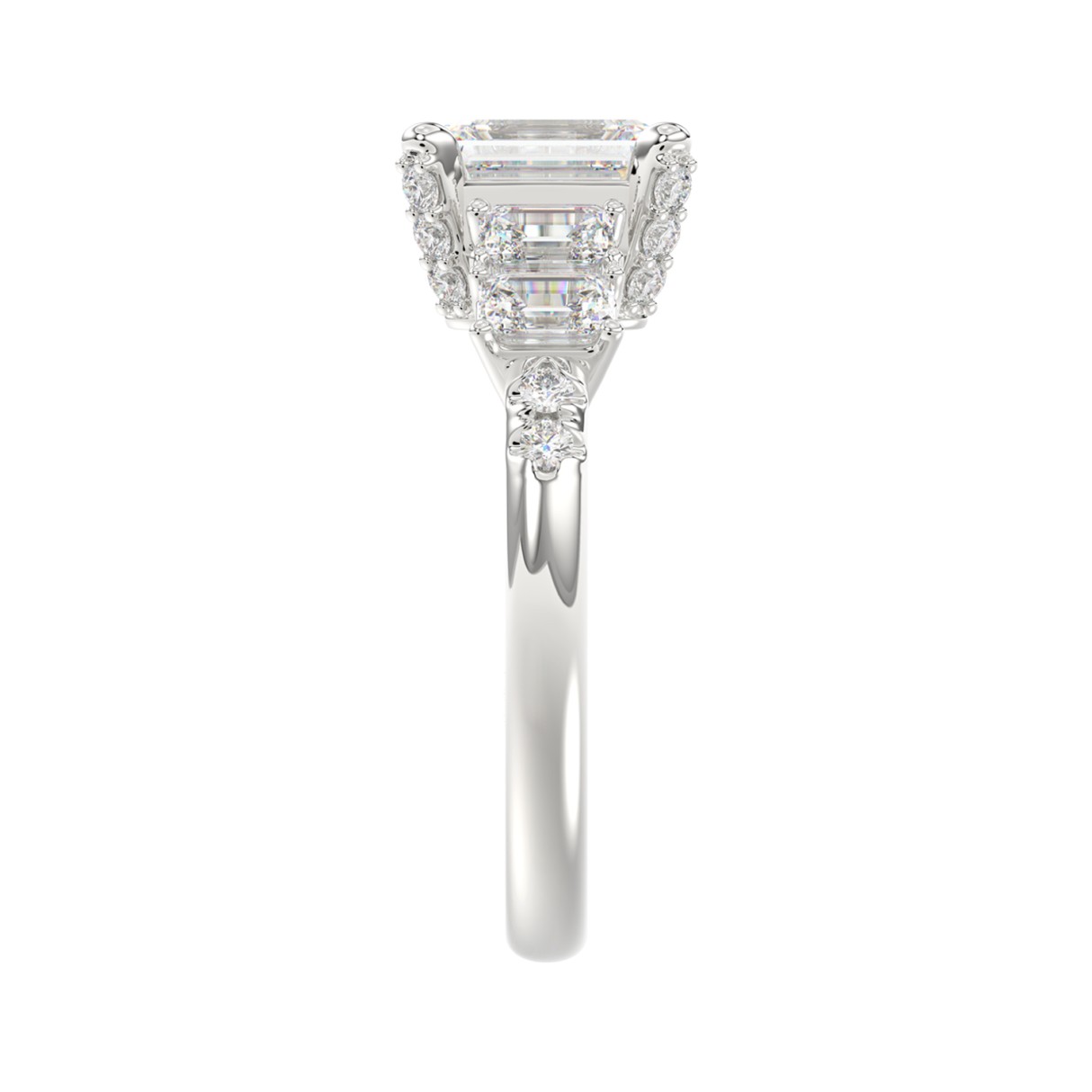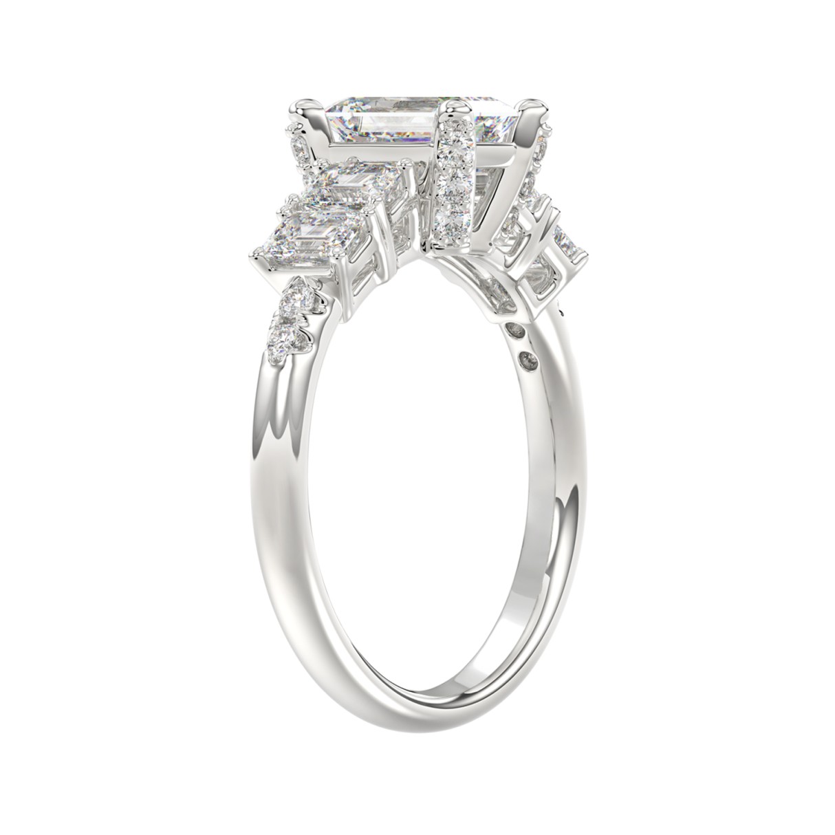 LADIES RING 2CT ROUND/EMERALD DIAMOND 14K WHITE GOLD (CENTER STONE EMERALD DIAMOND 1CT )