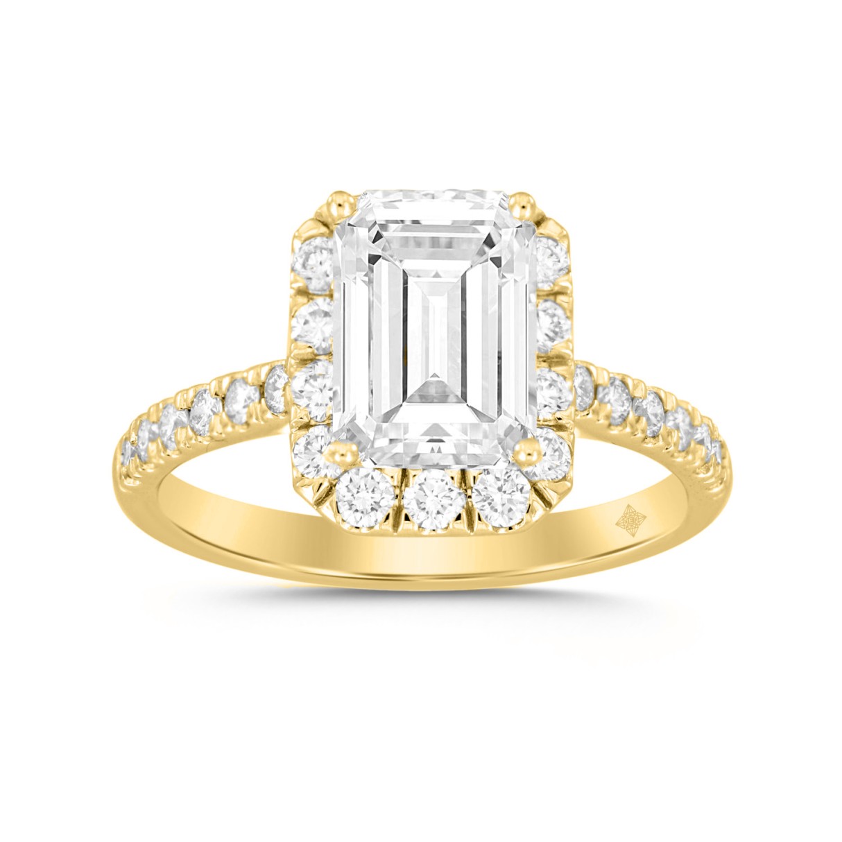 LADIES RING 2CT ROUND/EMERALD DIAMOND 14K YELLOW GOLD (CENTER STONE EMERALD DIAMOND 1 1/2CT )