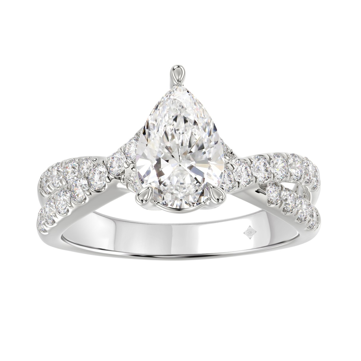 LADIES RING 2CT ROUND/PEAR DIAMOND 14K WHITE GOLD (CENTER STONE PEAR DIAMOND 1 1/2CT )