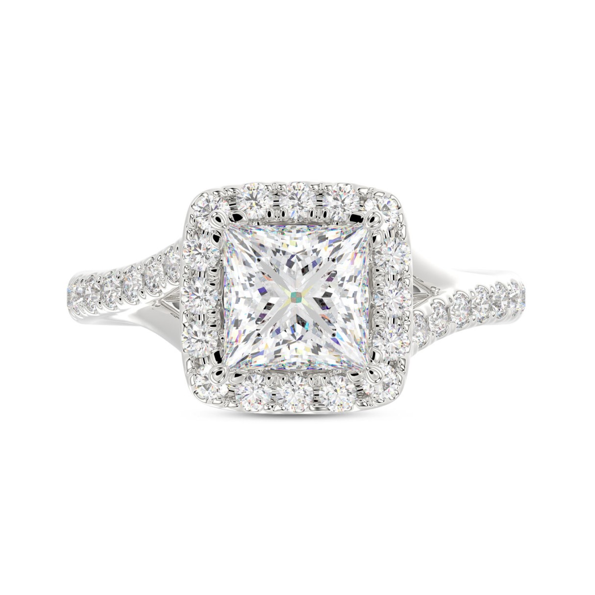 LADIES RING 2CT ROUND/PRINCESS DIAMOND 14K WHITE GOLD (CENTER STONE PRINCESS DIAMOND 1 1/2CT )