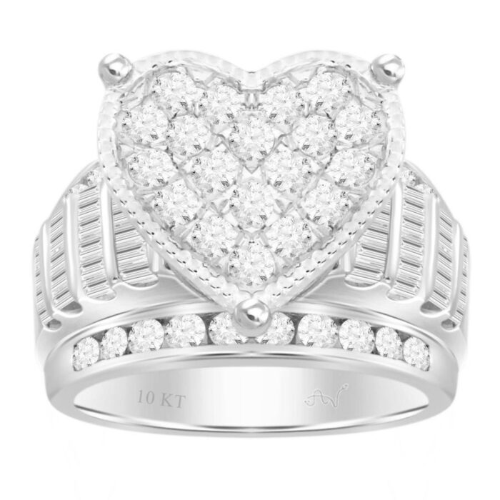 LADIES RING 3.00CT ROUND/BAGUETTE DIAMOND 10K WHITE GOLD