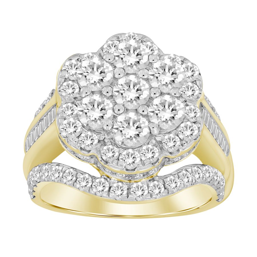 LADIES RING 3.00CT ROUND/BAGUETTE DIAMOND 10K YELLOW GOLD