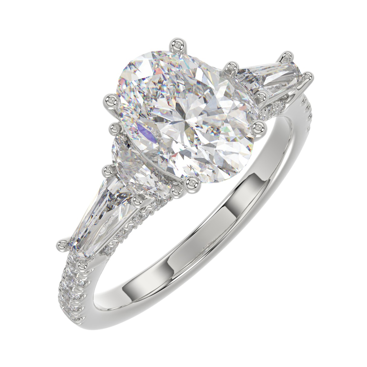 LADIES RING 3 1/2CT ROUND/HALF MOON/OVAL/BAGUETTE DIAMOND 14K WHITE GOLD (CENTER STONE OVAL DIAMOND 2CT )