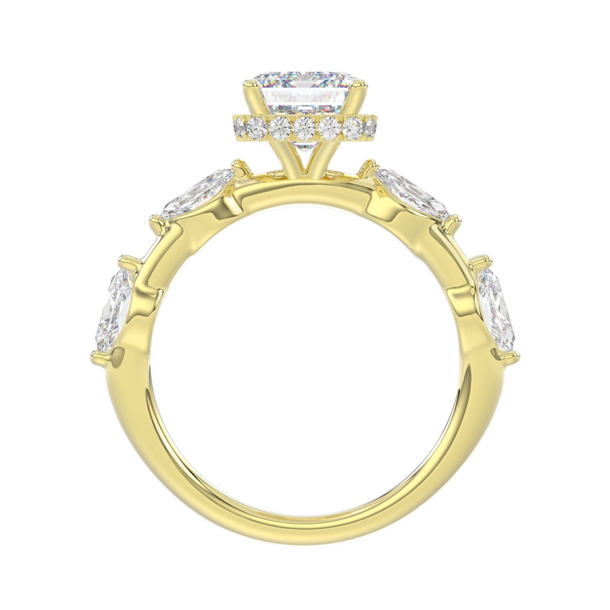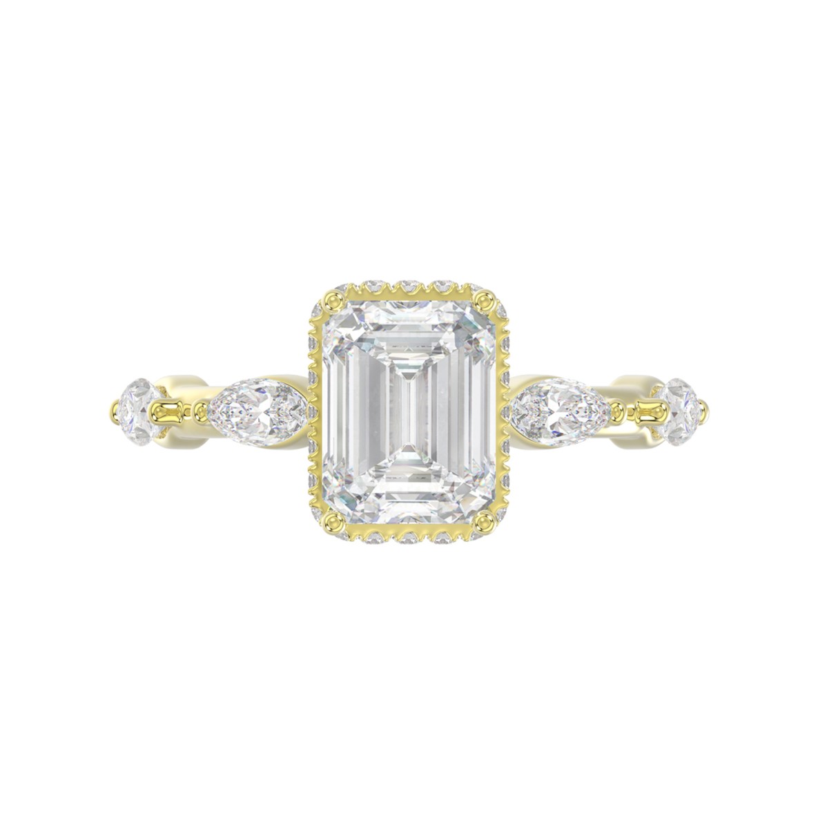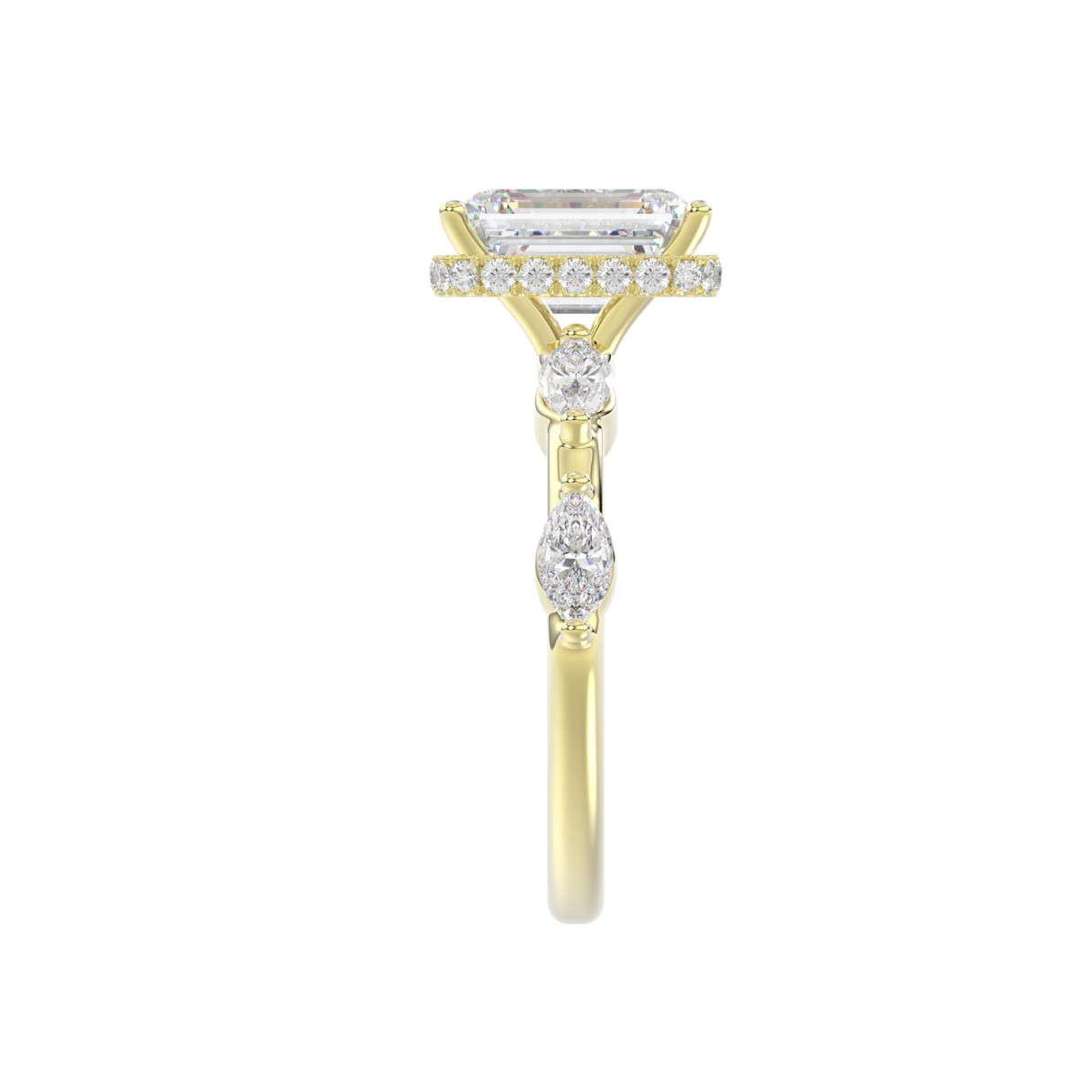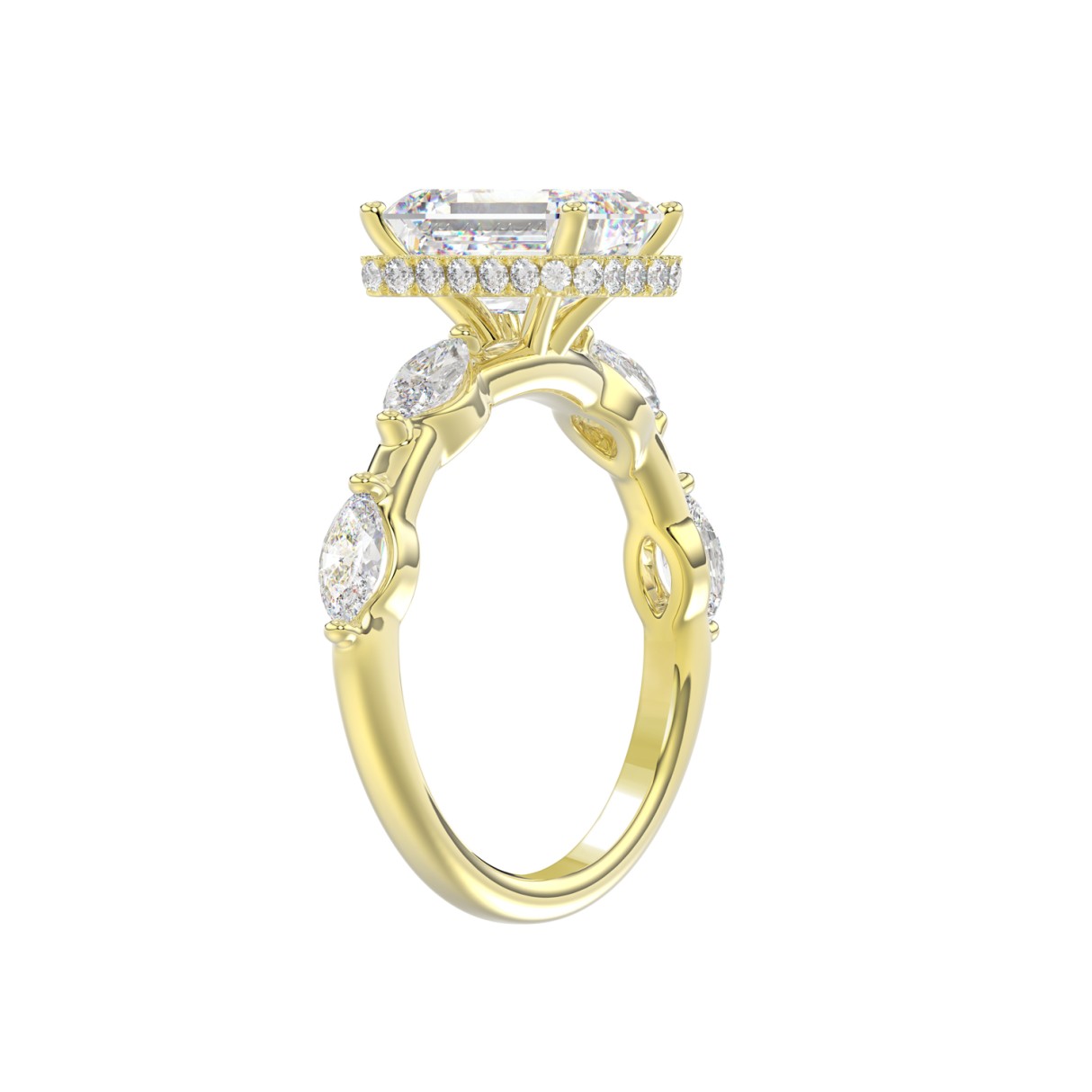 LADIES RING 3 1/2CT ROUND/MARQUISE/EMERALD DIAMOND 14K YELLOW GOLD (CENTER STONE EMERALD DIAMOND 3.00CT)