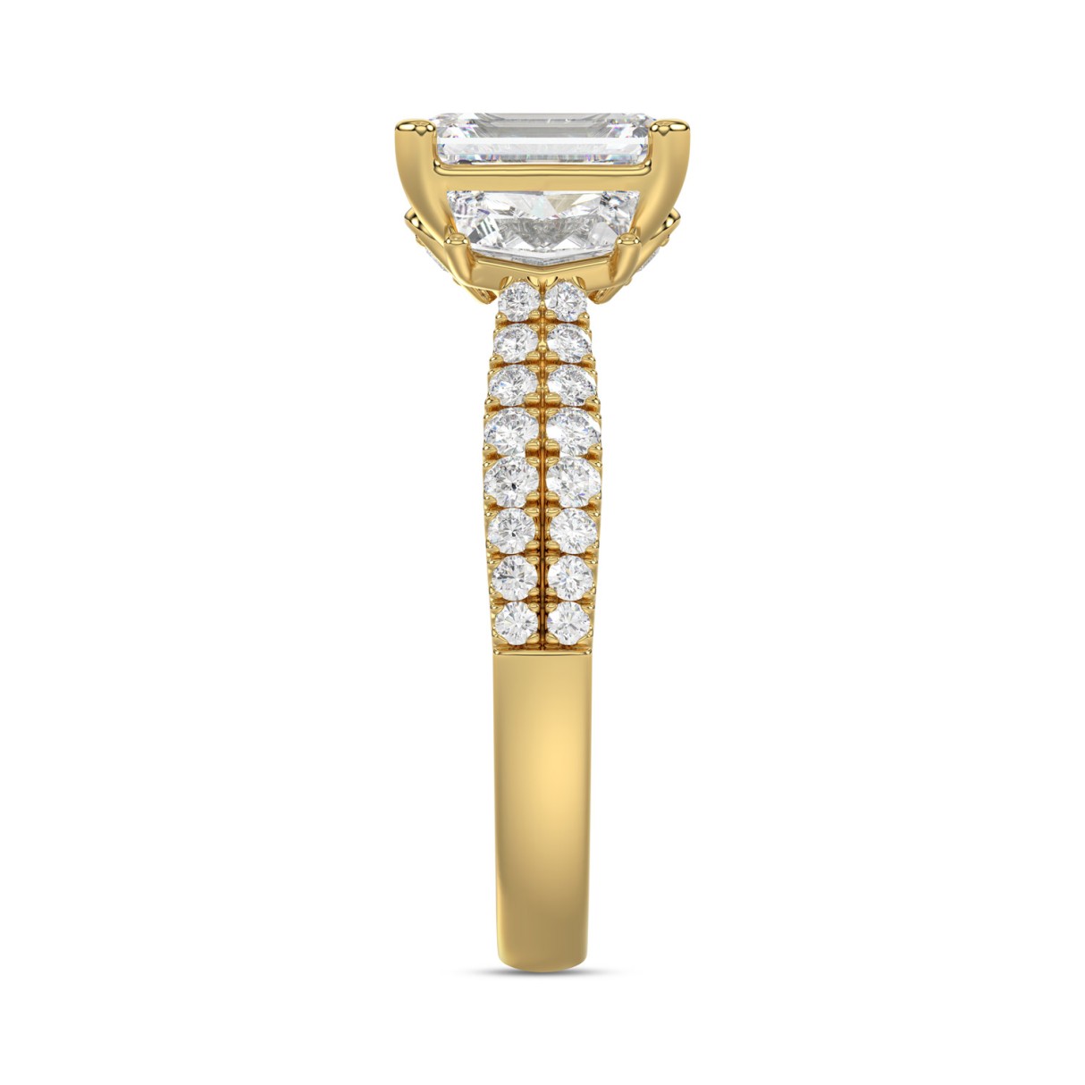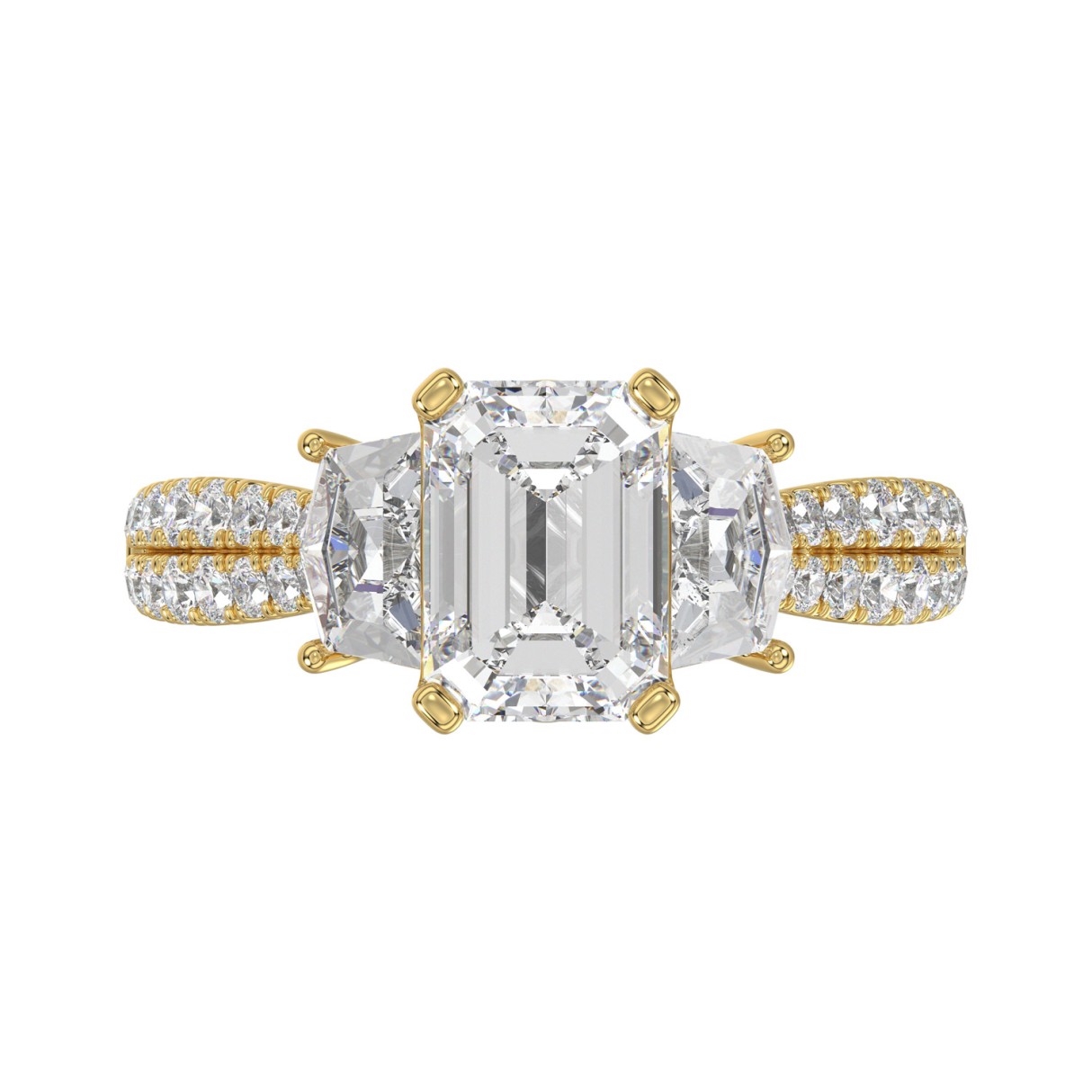 LADIES RING 3 1/4CT ROUND/EMERALD/CADILLAC DIAMOND 14K YELLOW GOLD (CENTER STONE EMERALD DIAMOND 2.00CT)