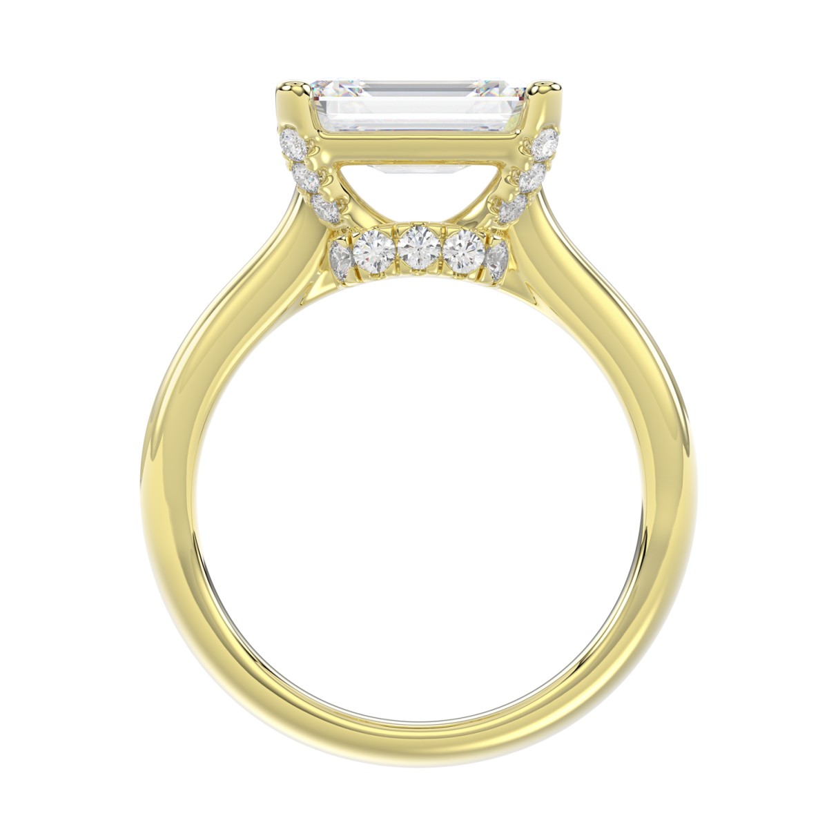 LADIES RING 3 1/4CT ROUND/EMERALD DIAMOND 14K YELLOW GOLD (CENTER STONE EMERALD DIAMOND 3.00CT)