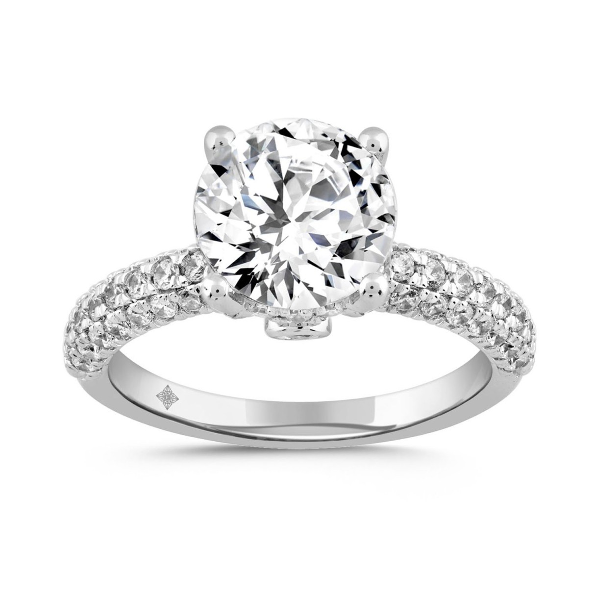 LADIES RING 3 3/4CT ROUND DIAMOND 14K WHITE GOLD (CENTER STONE ROUND DIAMOND 3CT )