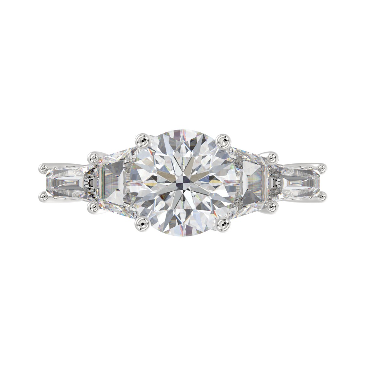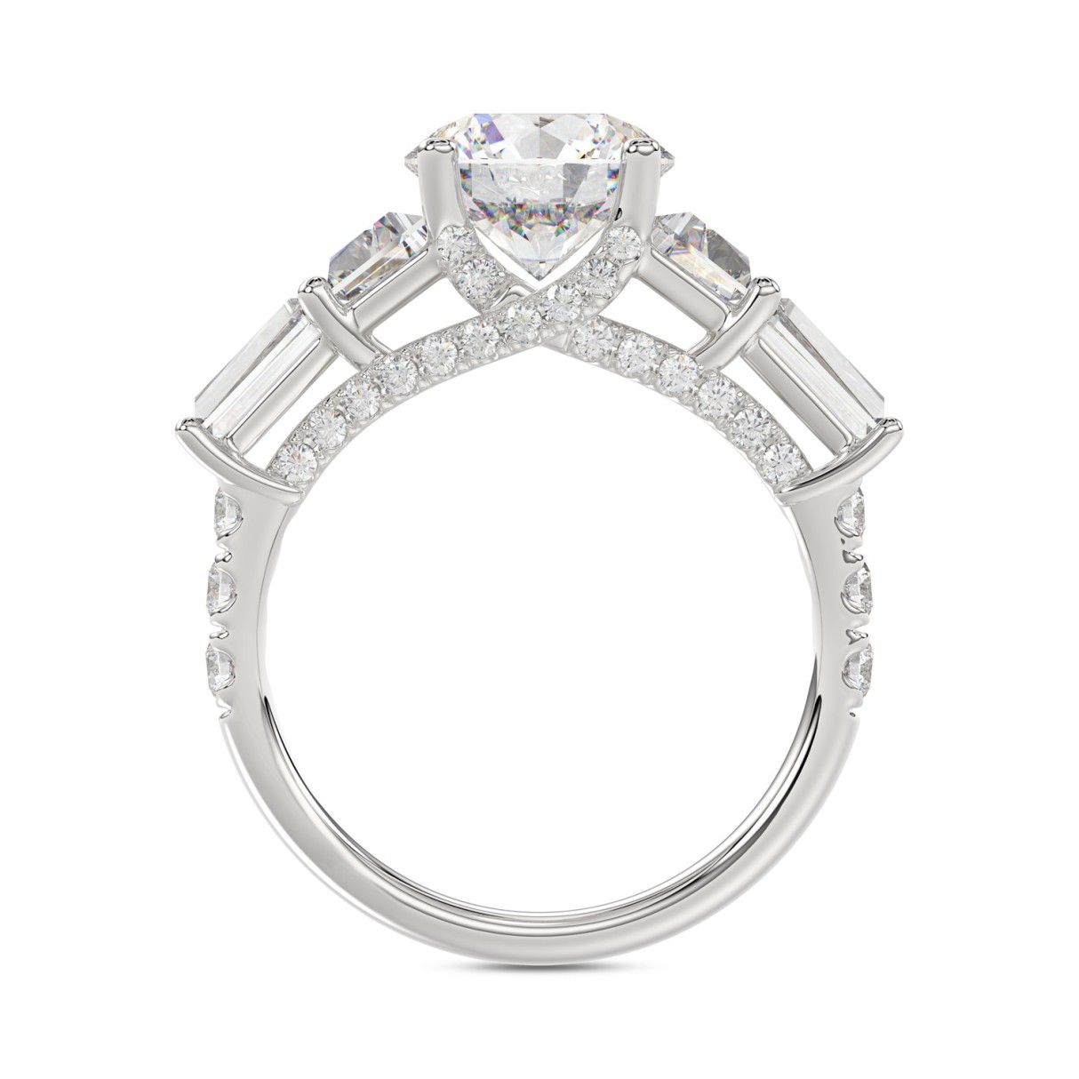 LADIES RING 3 3/4CT ROUND/TRAPEZOID/BAGUETTE DIAMOND 14K WHITE GOLD (CENTER STONE ROUND DIAMOND 2CT )