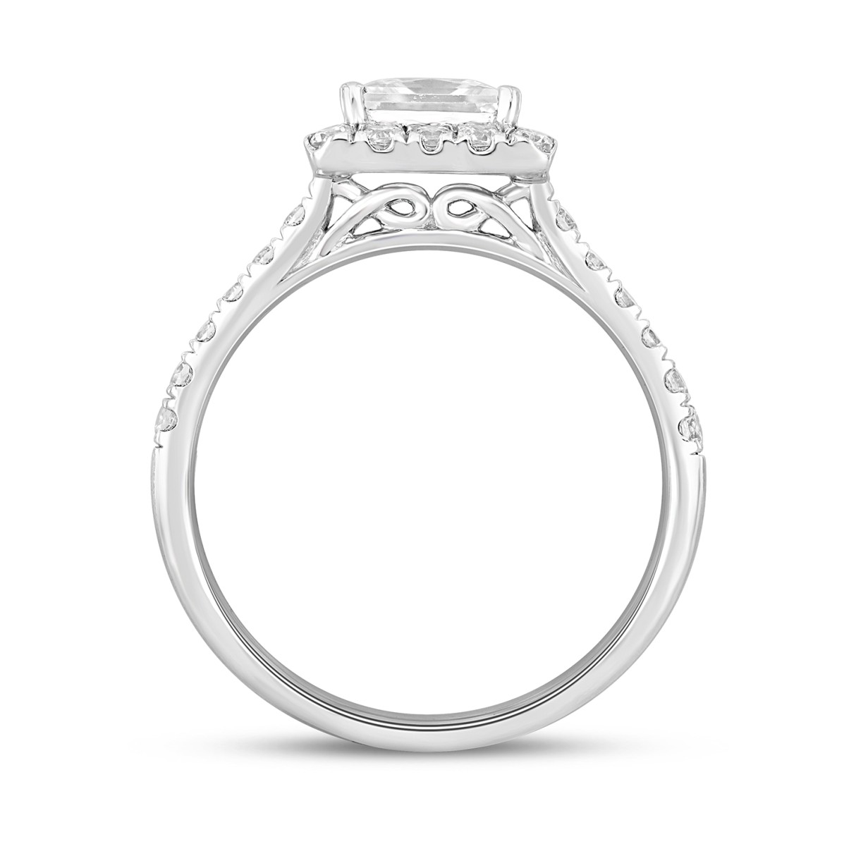 LADIES RING 3/4CT ROUND/PRINCESS DIAMOND 14K WHITE GOLD (CENTER STONE PRINCESS DIAMOND 1/2CT)
