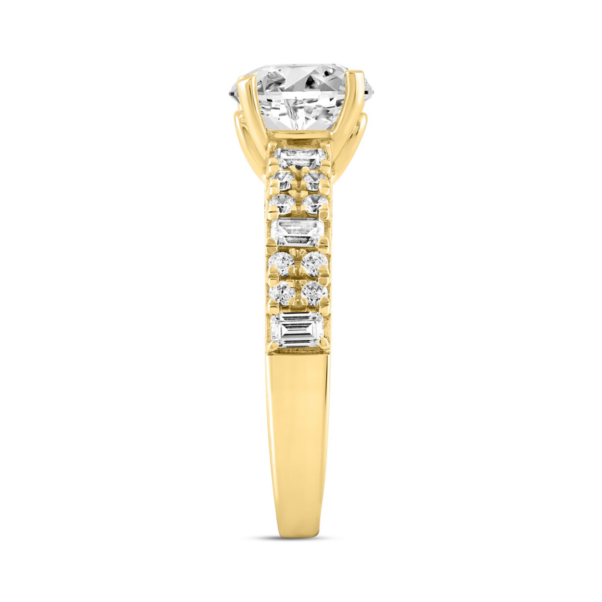 LADIES RING 3CT ROUND/EMERALD DIAMOND 14K YELLOW GOLD (CENTER STONE ROUND DIAMOND 2.00CT)