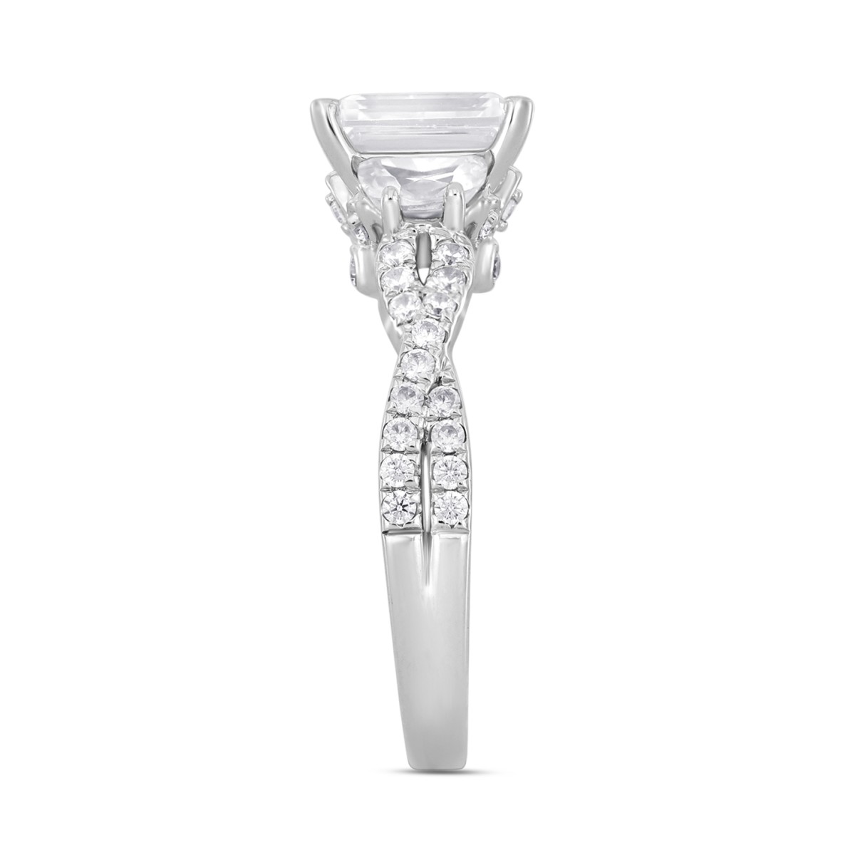 LADIES RING 3CT ROUND/HALF MOON/EMERALD DIAMOND 14K WHITE GOLD (CENTER STONE EMERALD DIAMOND 2CT )