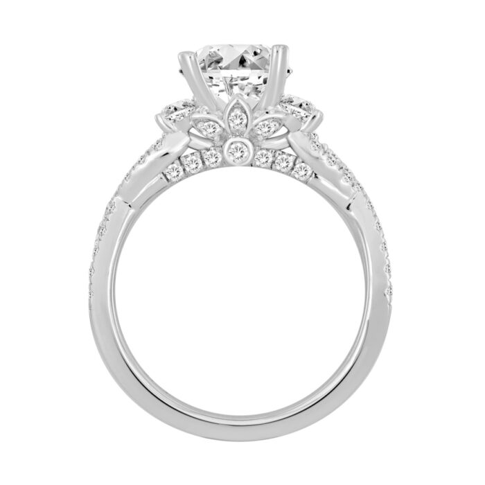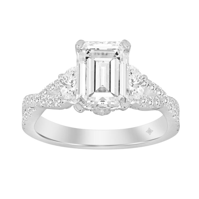 LADIES RING 3CT ROUND/HALF MOON/EMERALD DIAMOND 14K WHITE GOLD (CENTER STONE EMERALD DIAMOND 2CT )