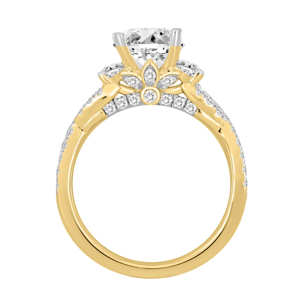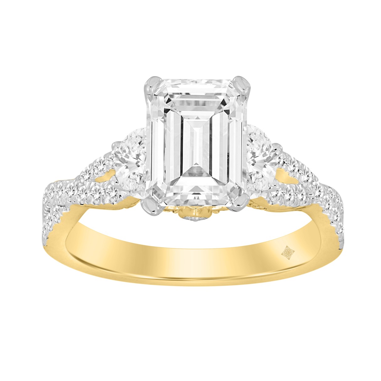 LADIES RING 3CT ROUND/HALF MOON/EMERALD DIAMOND 14K YELLOW GOLD (CENTER STONE EMERALD DIAMOND 2CT )