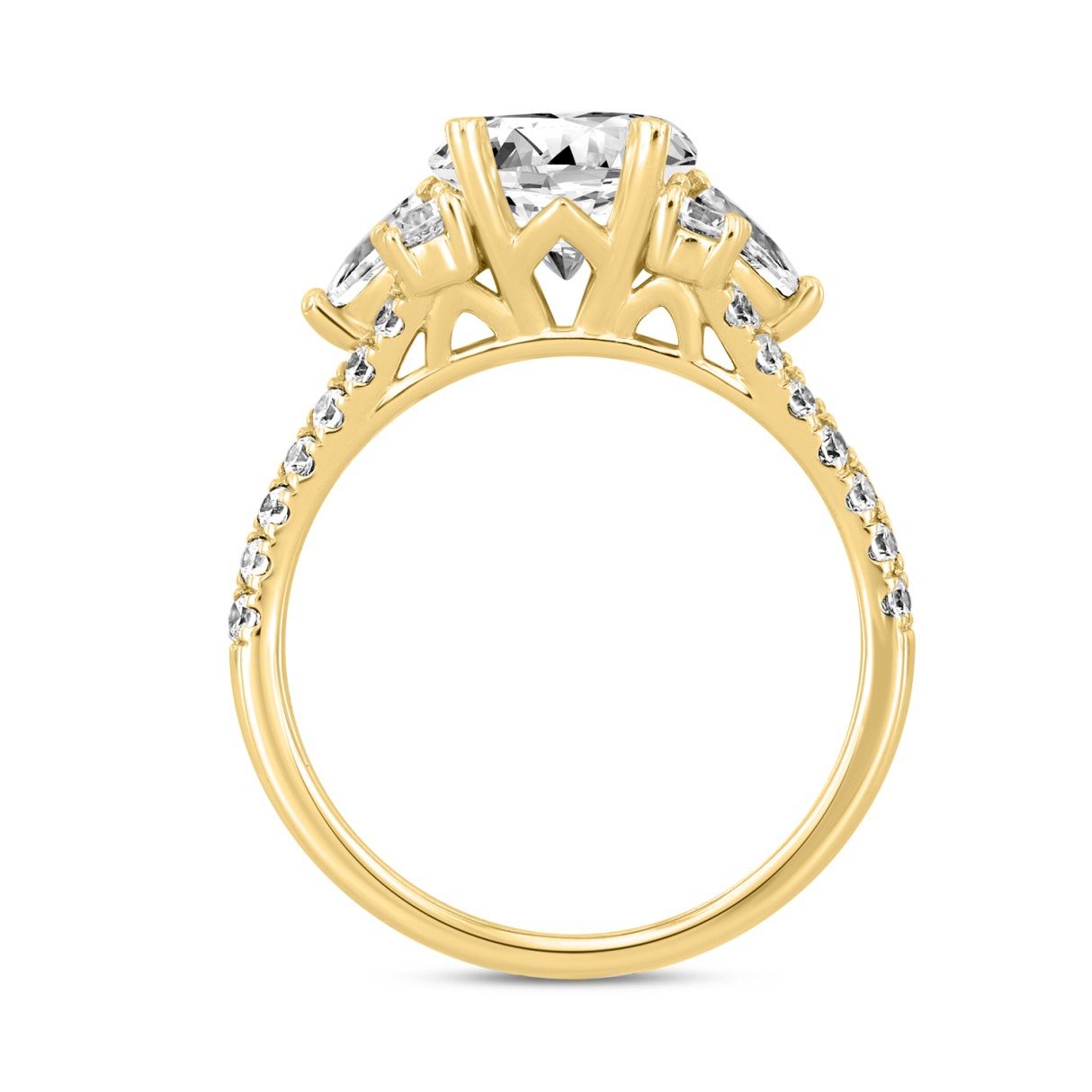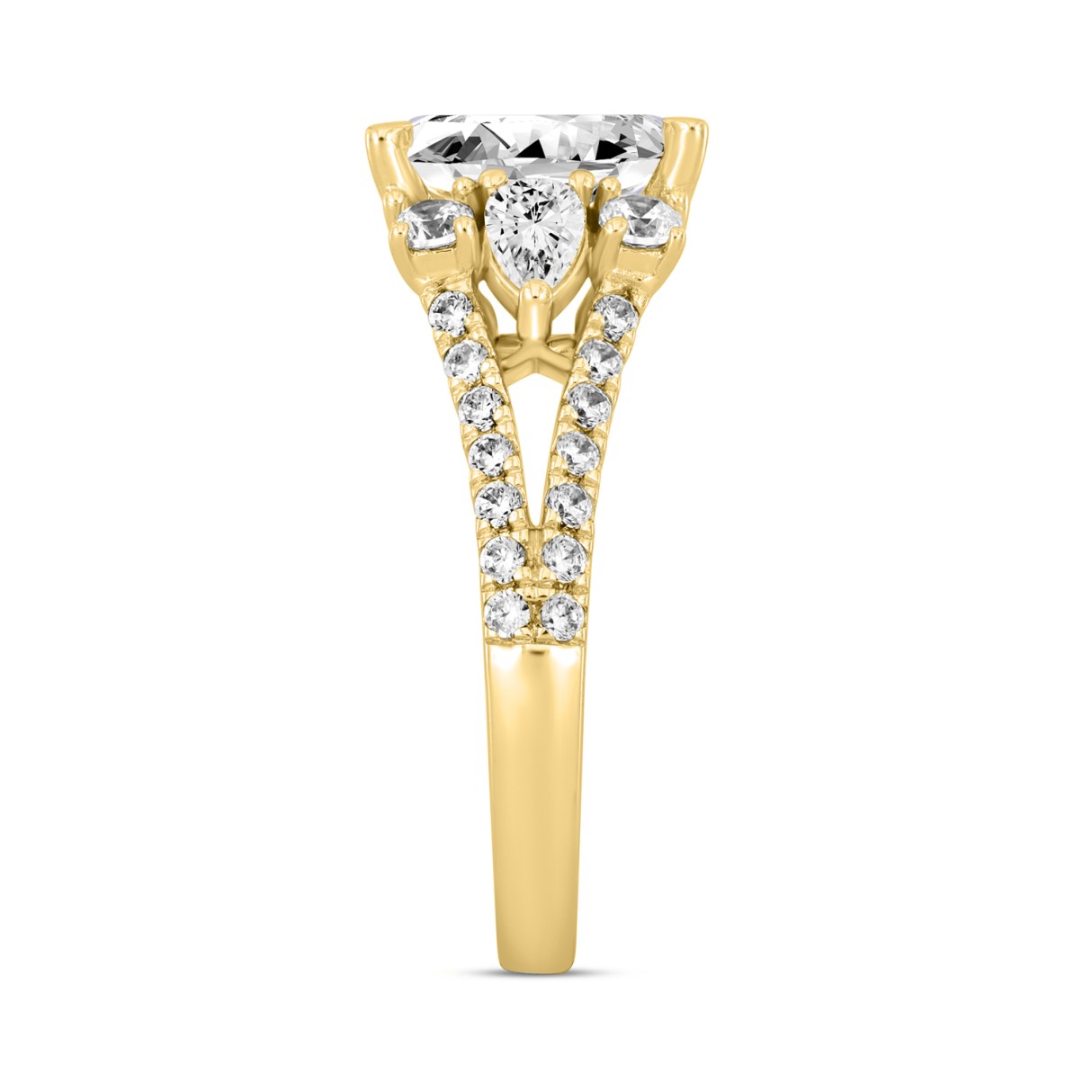 LADIES RING 3CT ROUND/OVAL/PEAR DIAMOND 14K YELLOW GOLD (CENTER STONE OVAL DIAMOND 2CT )