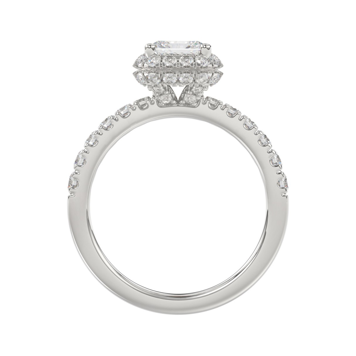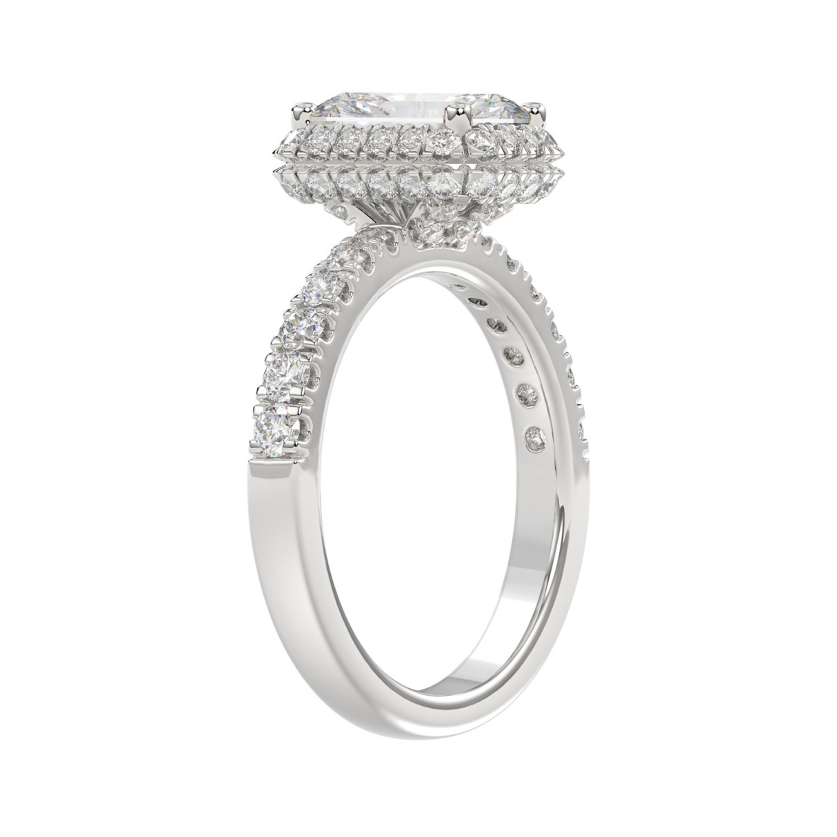 LADIES RING 4.00CT ROUND DIAMOND 18K WHITE GOLD (CENTER STONE EMERALD DIAMOND 3CT )