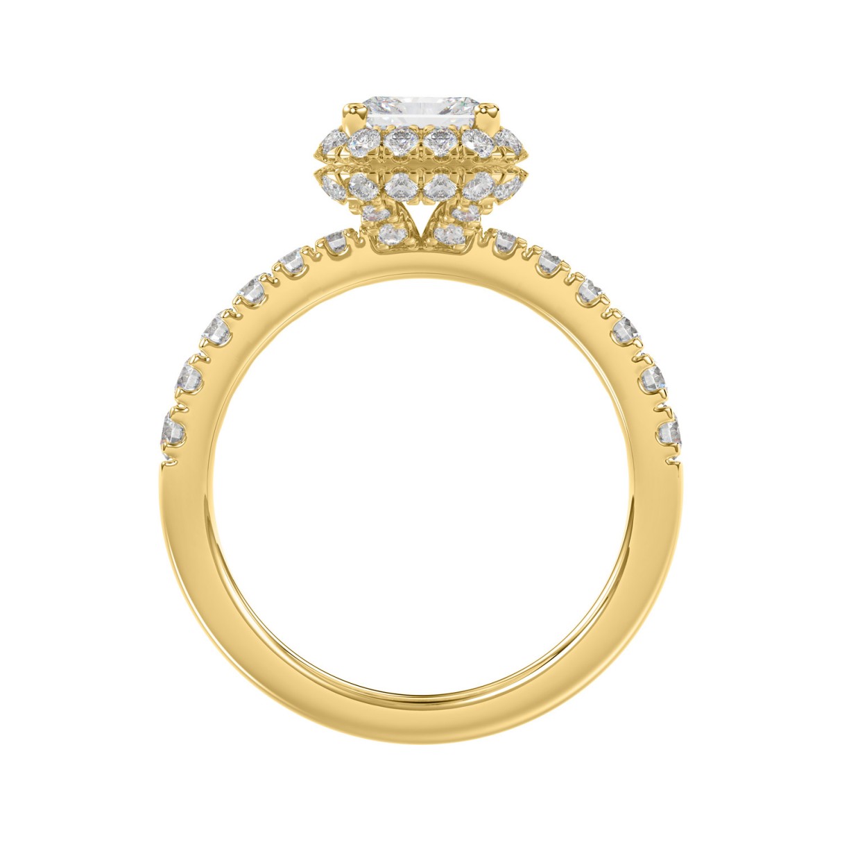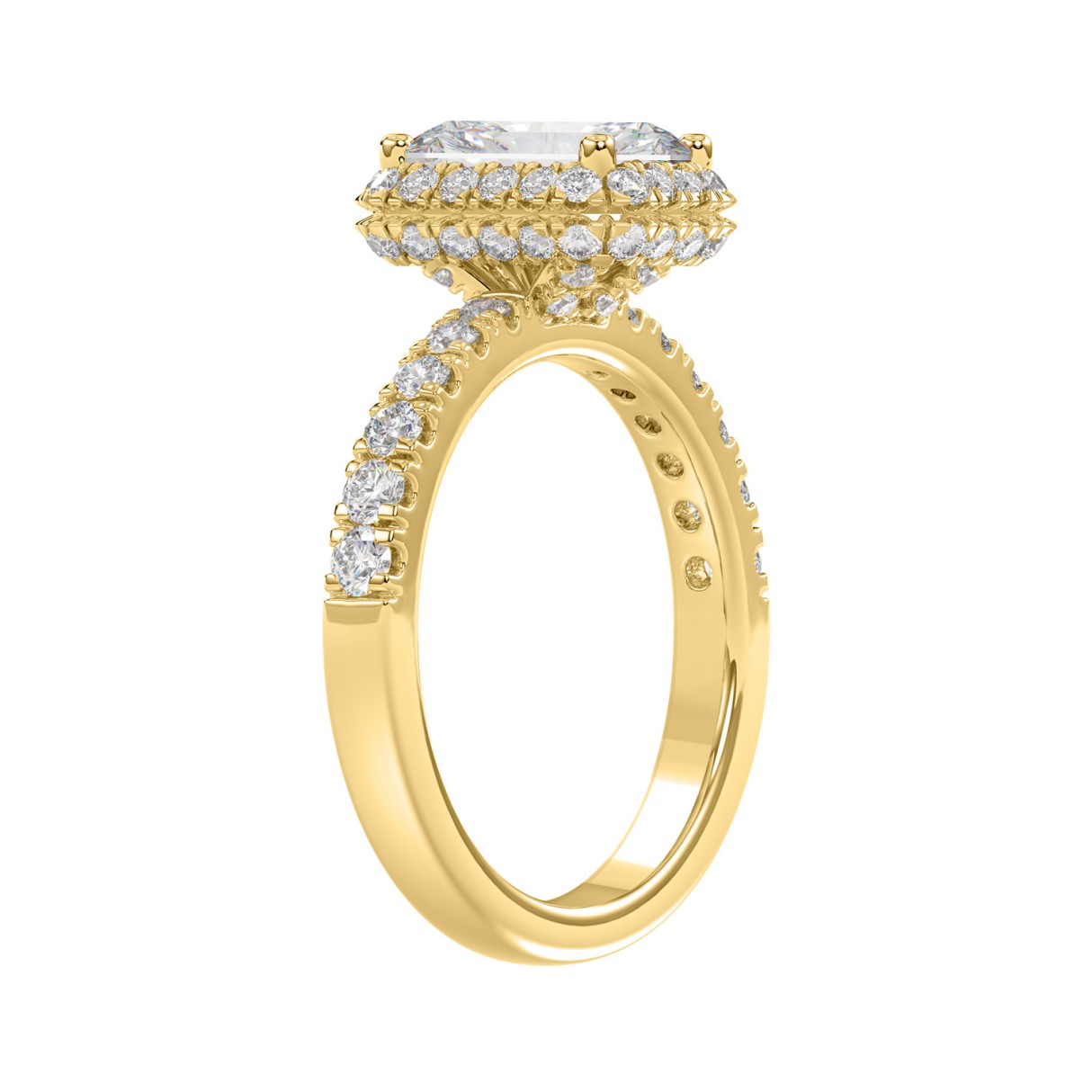 LADIES RING 4.00CT ROUND DIAMOND 18K YELLOW GOLD (CENTER STONE EMERALD DIAMOND 3CT )