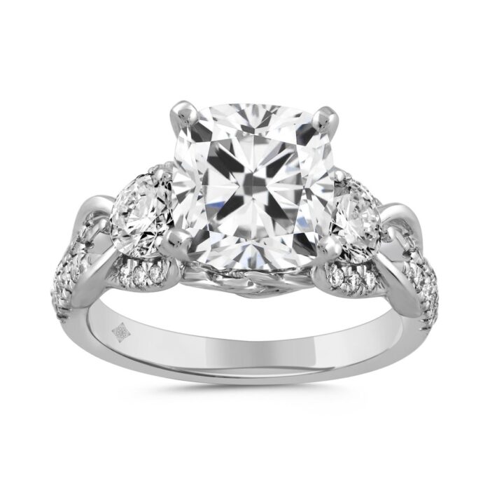 LADIES RING 4CT ROUND/CUSHION DIAMOND 14K WHITE GOLD (CENTER STONE CUSHION DIAMOND 3CT )