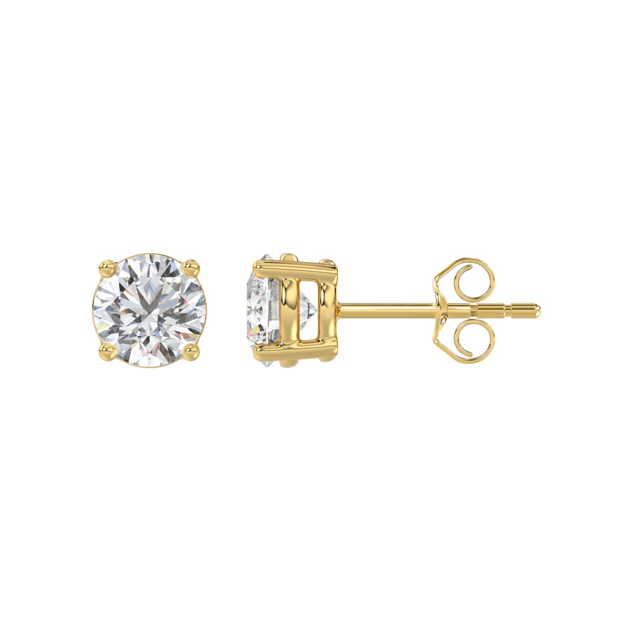 LADIES SOLITAIRE EARRINGS 1 1/3CT ROUND DIAMOND 14K YELLOW GOLD