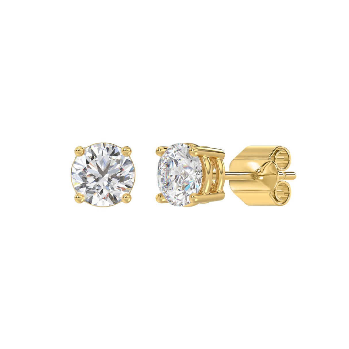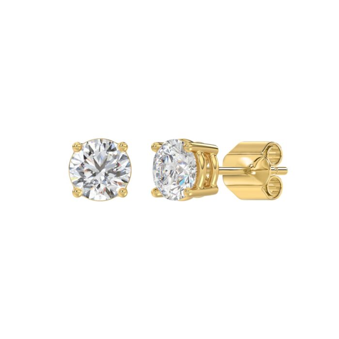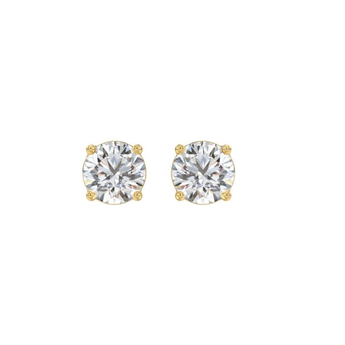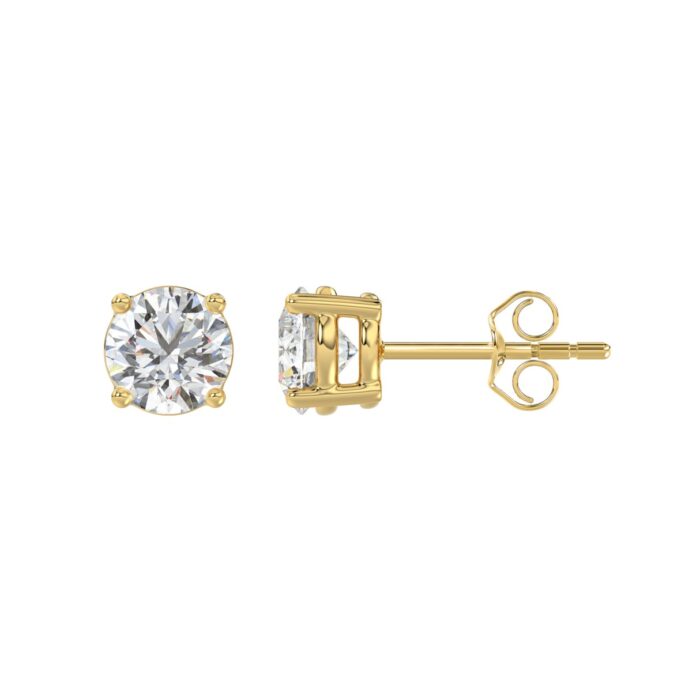 LADIES SOLITAIRE EARRINGS 1 1/3CT ROUND DIAMOND 14K YELLOW GOLD