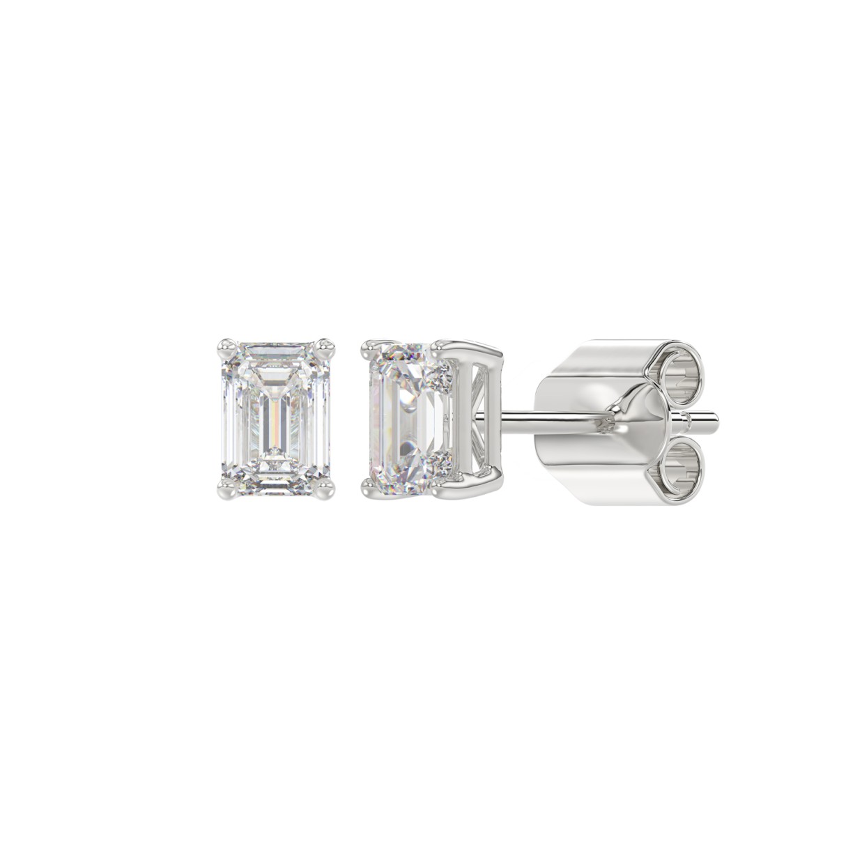 LADIES SOLITAIRE EARRINGS 1/2CT EMERALD DIAMOND 14K WHITE GOLD