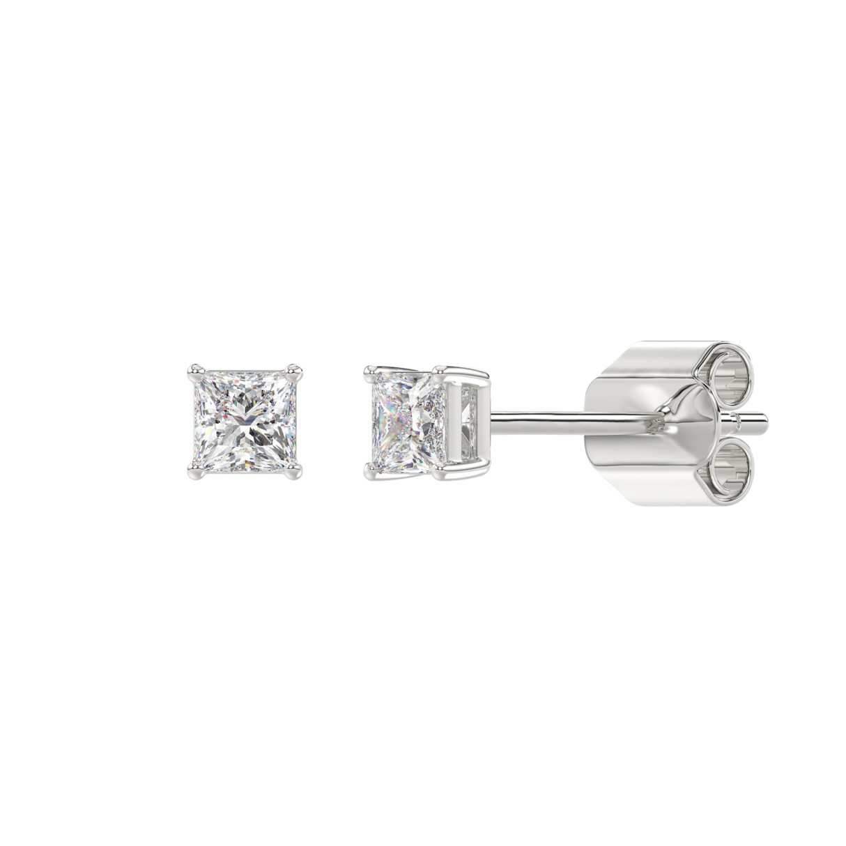 LADIES SOLITAIRE EARRINGS 1/2CT PRINCESS DIAMOND 14K WHITE GOLD (CENTER STONE PRINCESS DIAMOND 1/4CT )
