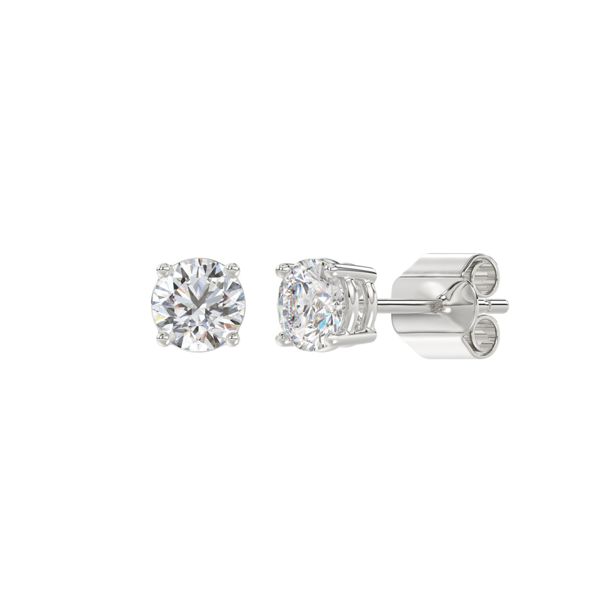 LADIES SOLITAIRE EARRINGS 1/2CT ROUND DIAMOND 14K WHITE GOLD