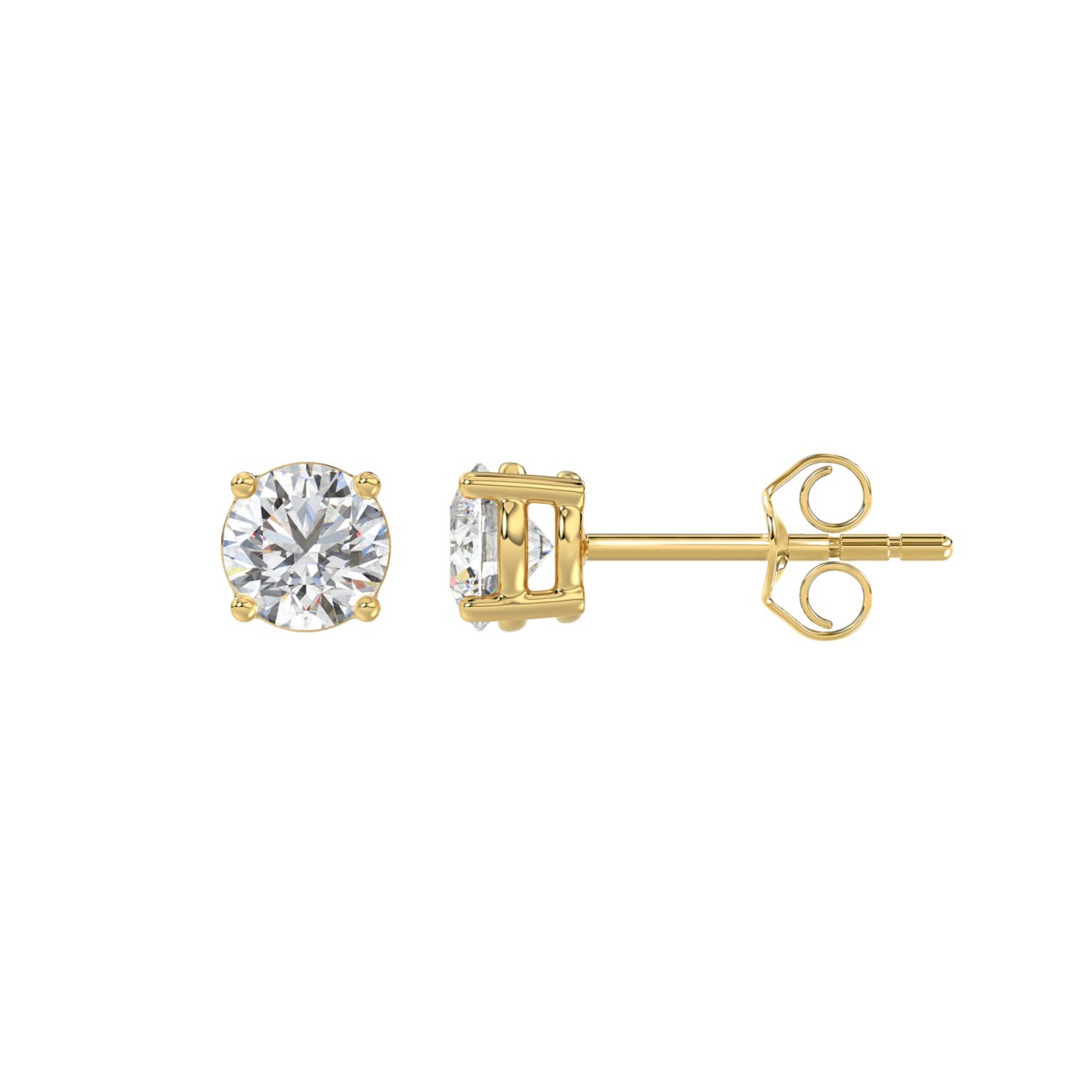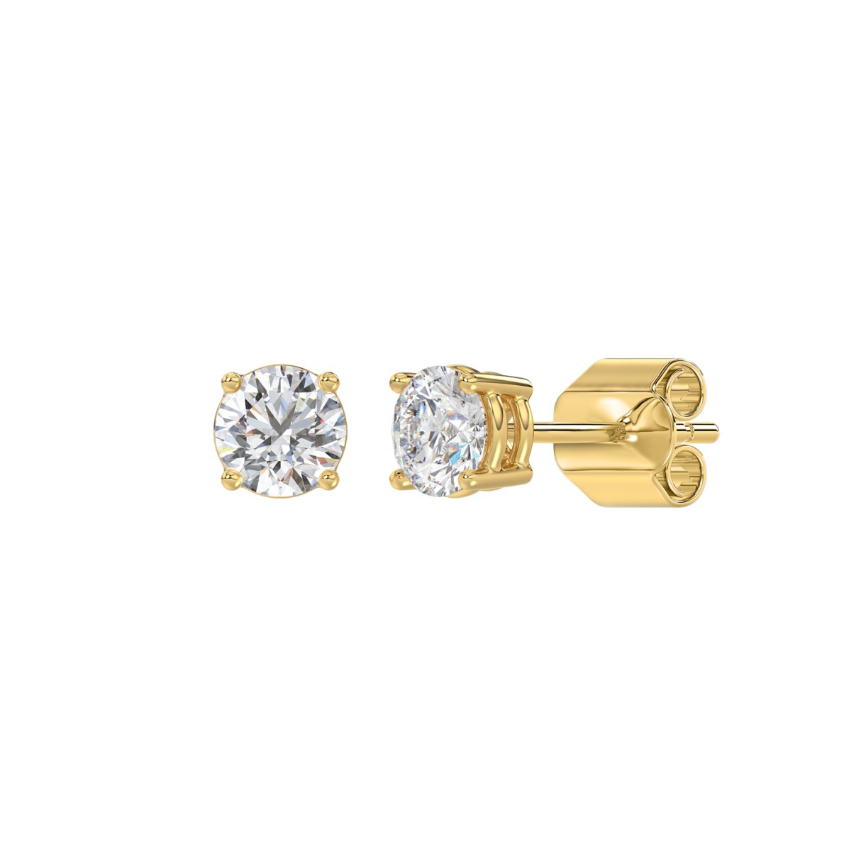 LADIES SOLITAIRE EARRINGS 1/2CT ROUND DIAMOND 18K YELLOW GOLD