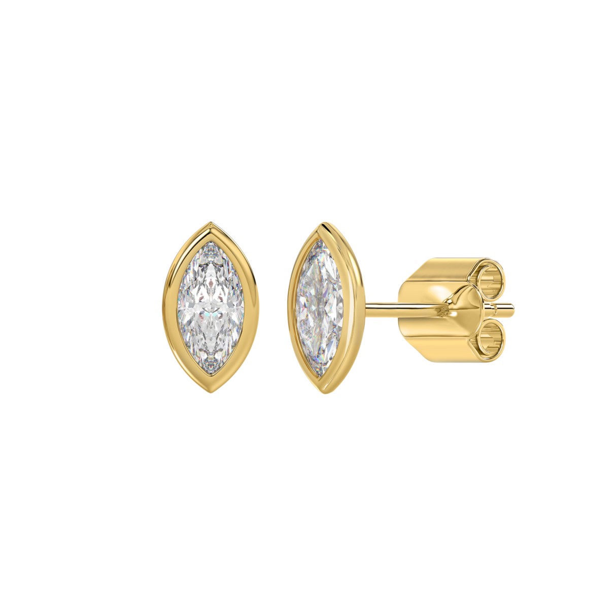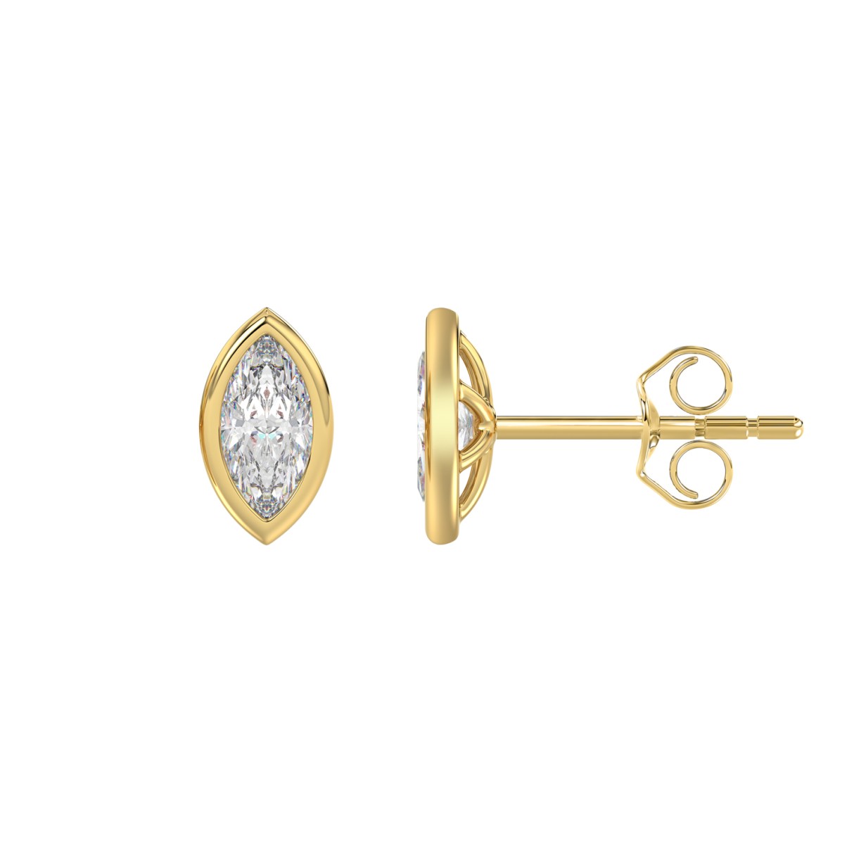LADIES SOLITAIRE EARRINGS 1CT MARQUISE DIAMOND 14K YELLOW GOLD