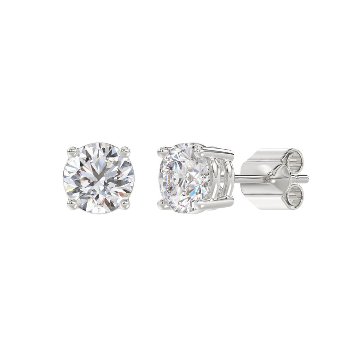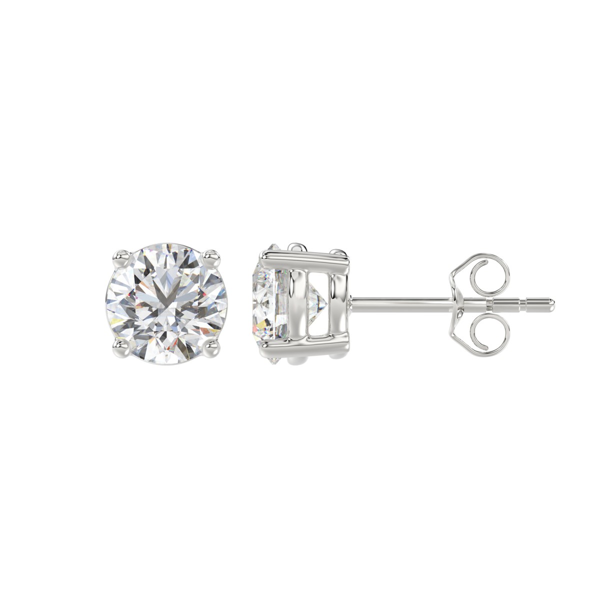 LADIES SOLITAIRE EARRINGS 2 1/2CT ROUND DIAMOND 14K WHITE GOLD