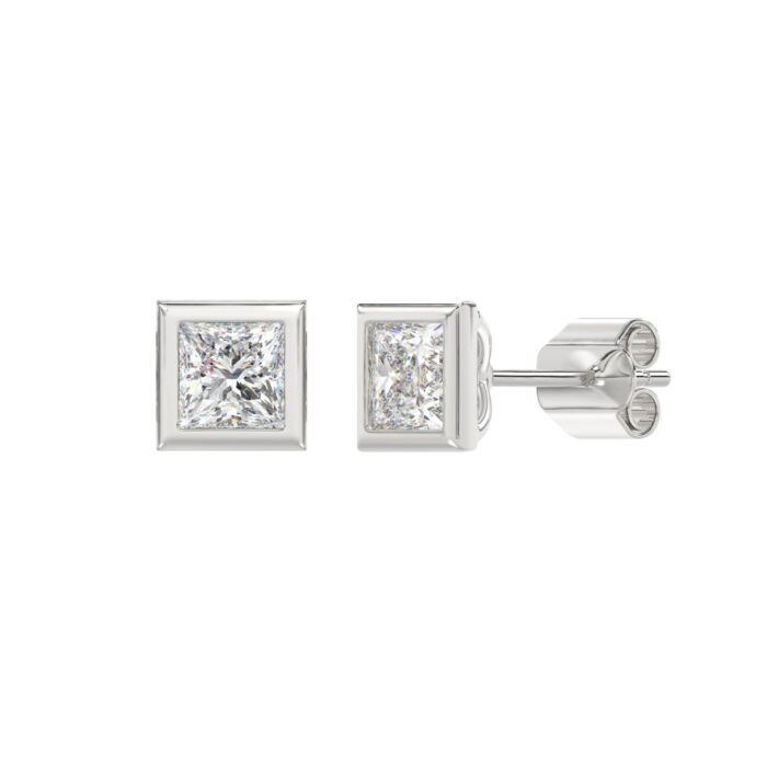 LADIES SOLITAIRE EARRINGS 2CT PRINCESS DIAMOND 14K WHITE GOLD