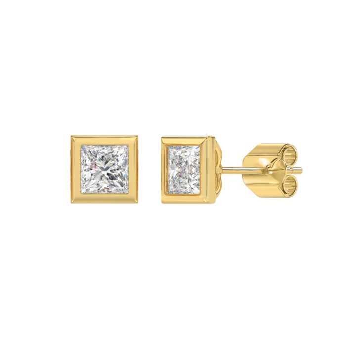 LADIES SOLITAIRE EARRINGS 2CT PRINCESS DIAMOND 14K YELLOW GOLD