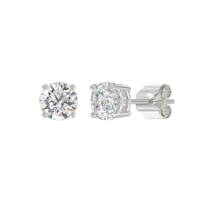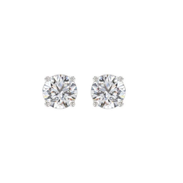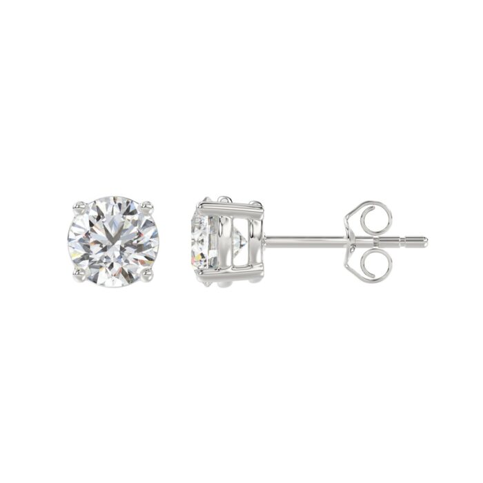 LADIES SOLITAIRE EARRINGS 2CT ROUND DIAMOND 14K WHITE GOLD